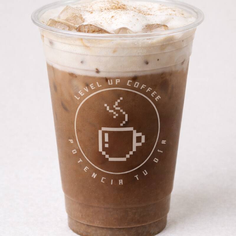 Espresso con chocolate, leche fría y hielo. Cremoso, dulce y refrescante.