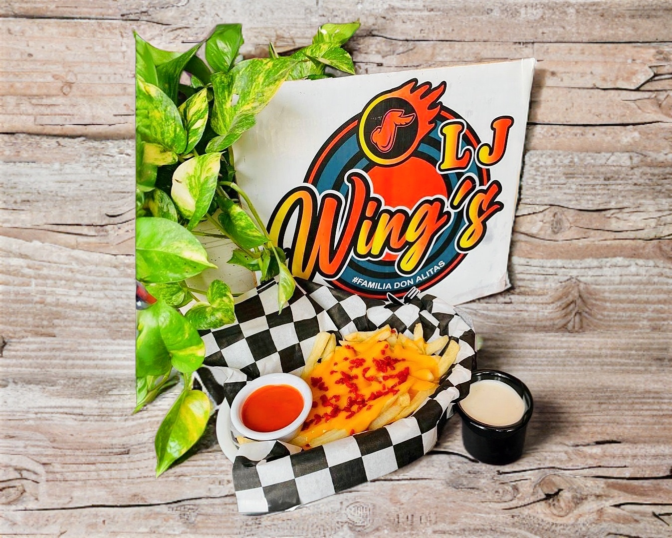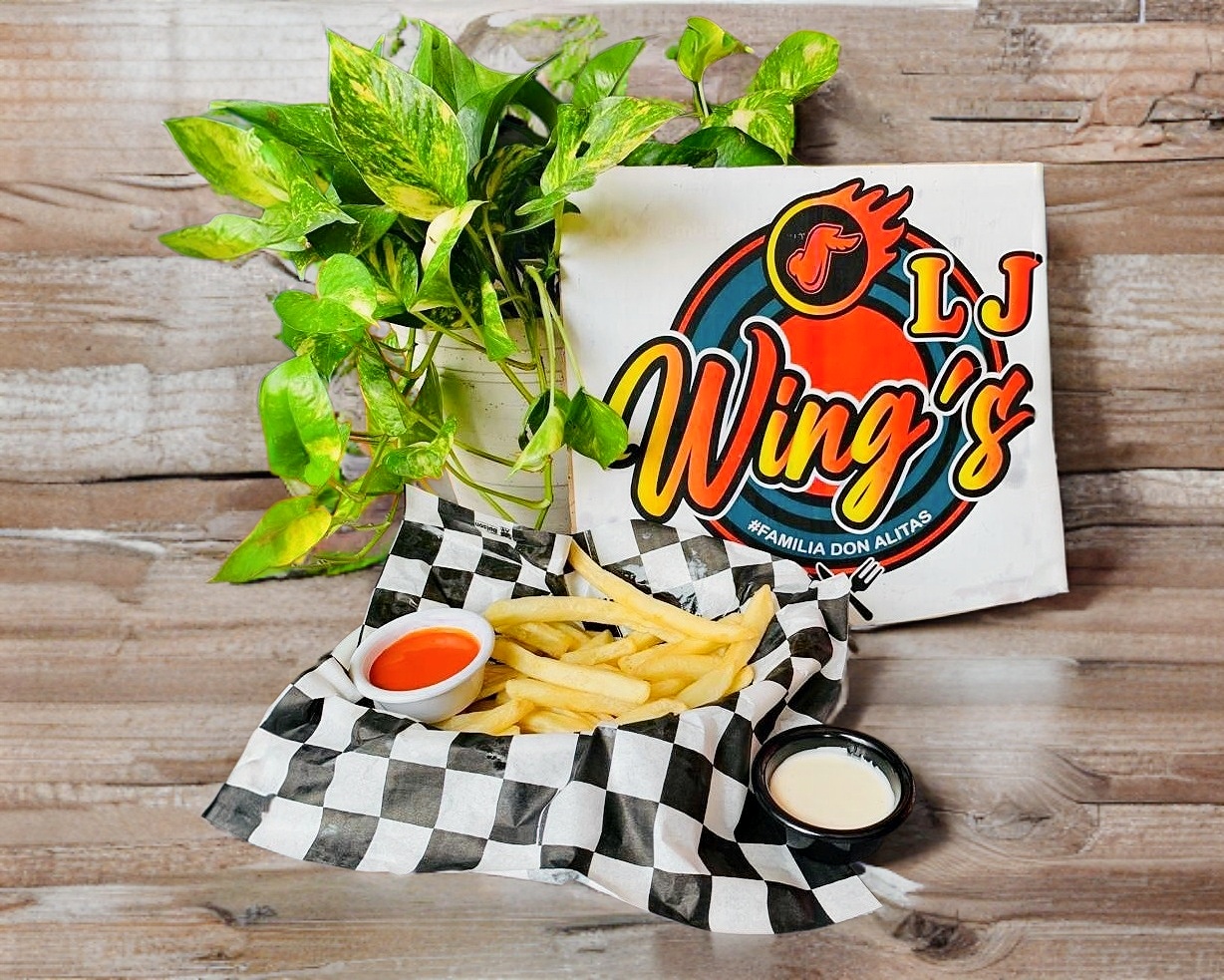 Burger con Lechuga, tenders de Pollo, aderezo especial y aros de cebolla acompañadas de papas a la francesa.