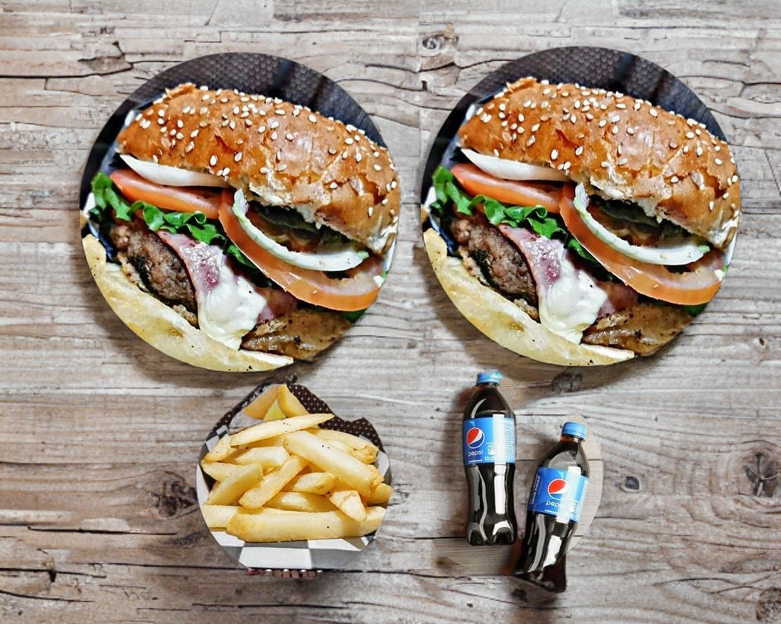 2 TAPATIA BURGER, 1 PAPAS A LA FRANCESA Y 2 REFRESCOS DE 355 ML.