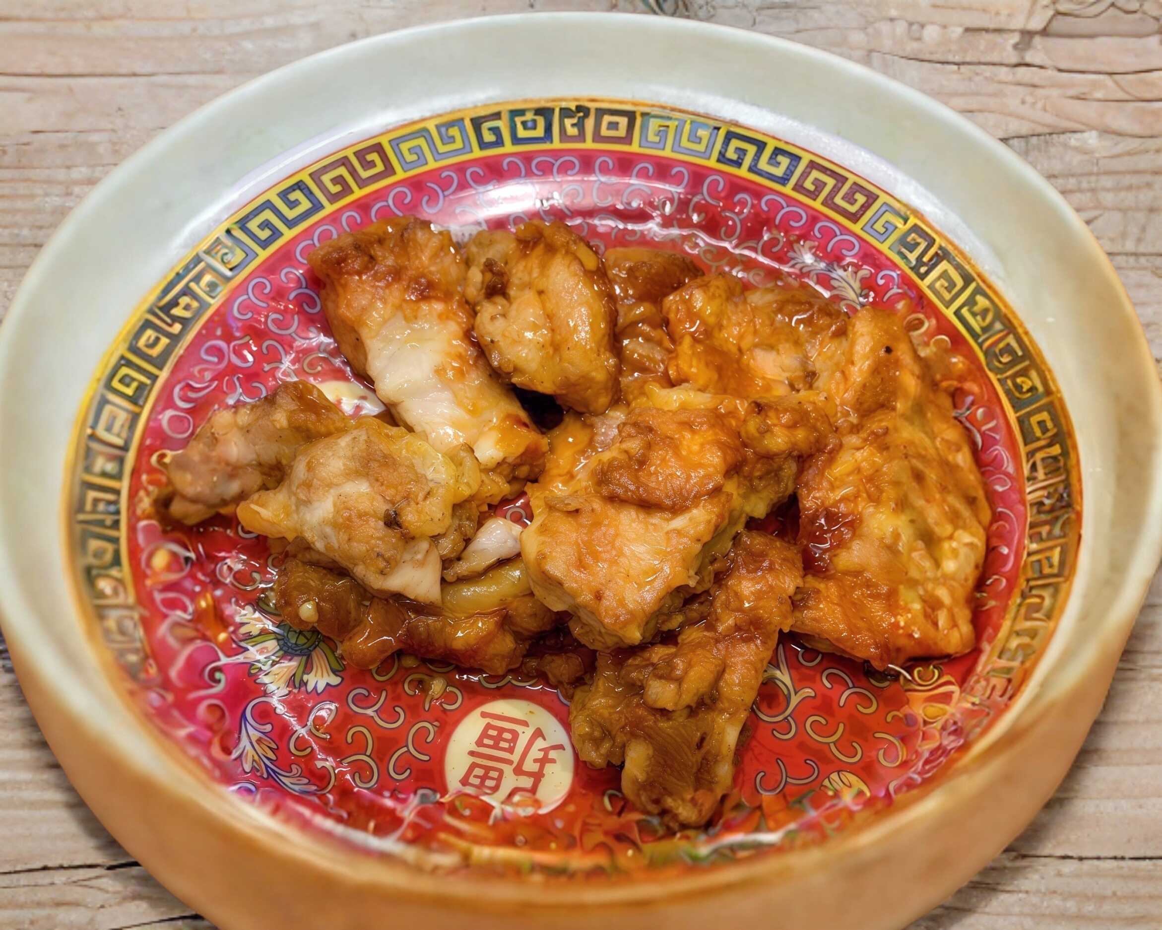 Arroz o pasta con dos guisos diferentes (200 g aproximadamente), salsa picante y agridulce, (porción personal).