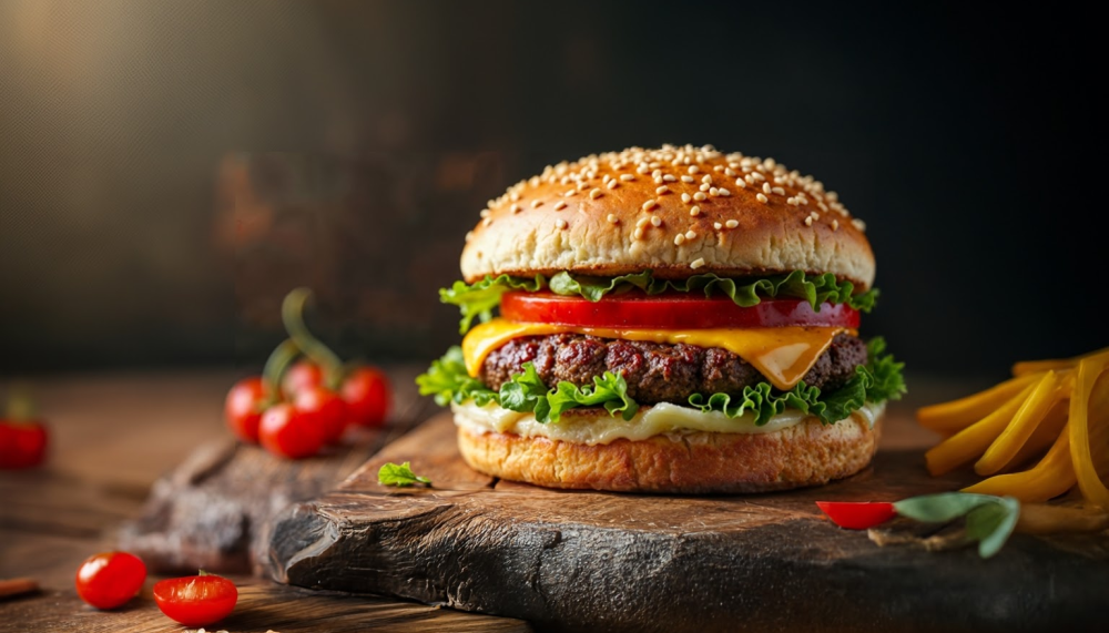 Deliciosa carne de 150 gramos sabor arrachera, con pan tipo brioche, queso tipo americano, vegetales y aderezos.
