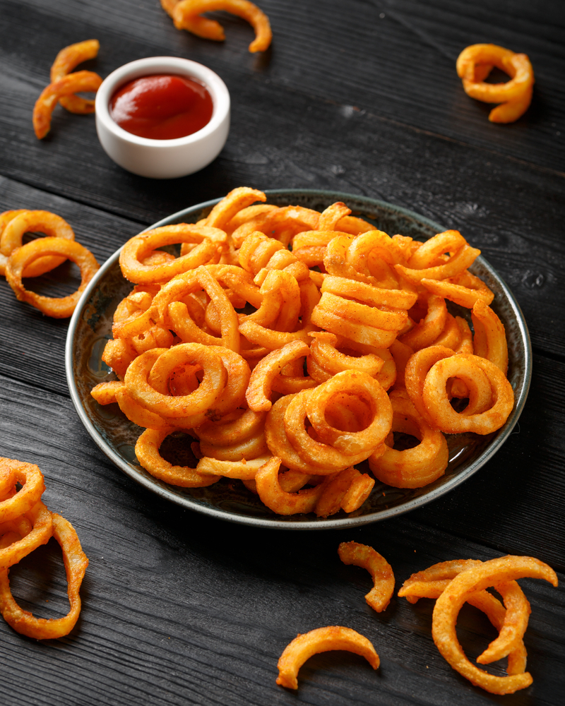 Deliciosa papa en espiral freída y sazonada en su punto.