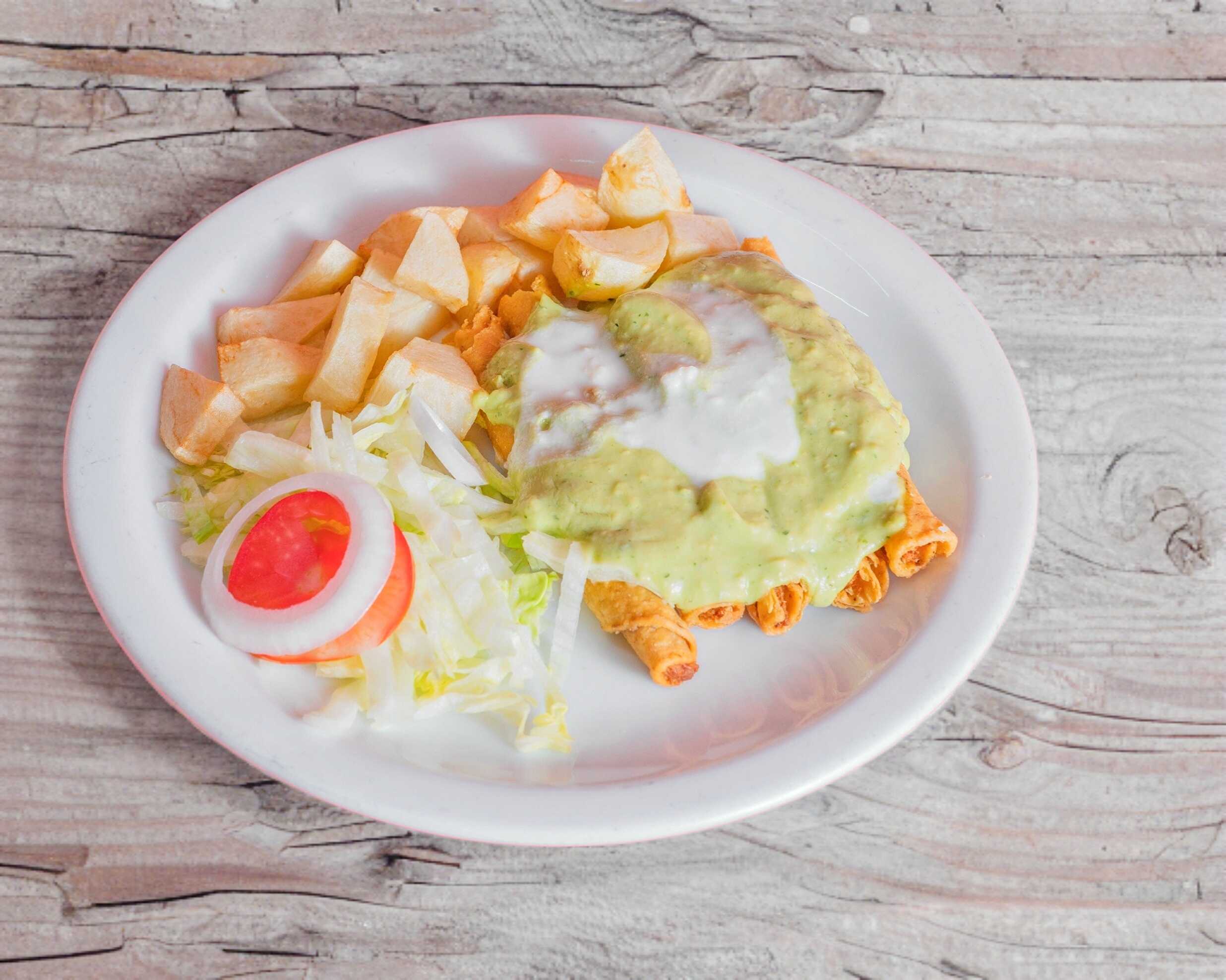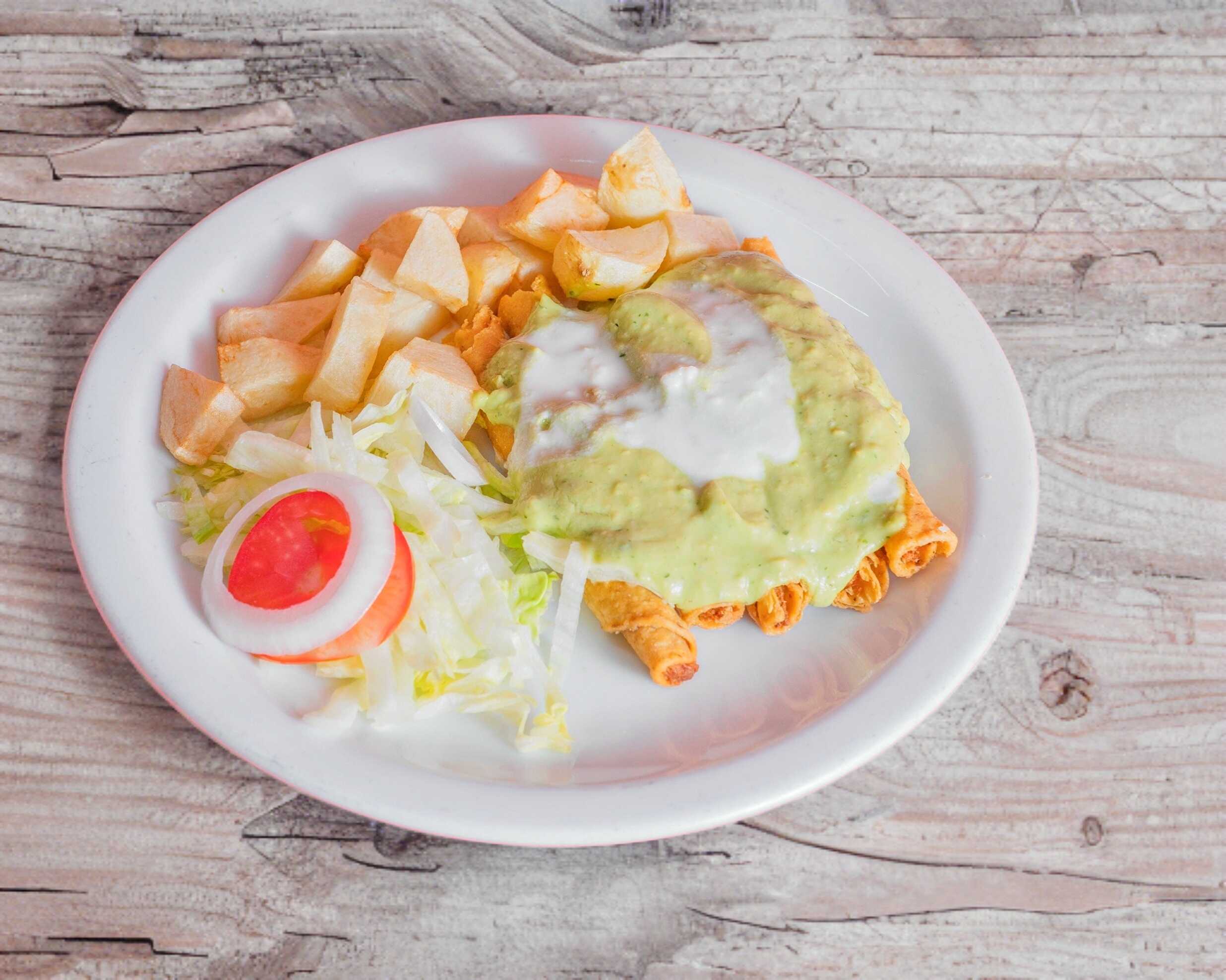 5 pza, con arroz y lechuga. Incluye papa francesa, salsa de guacamole y crema aparte.