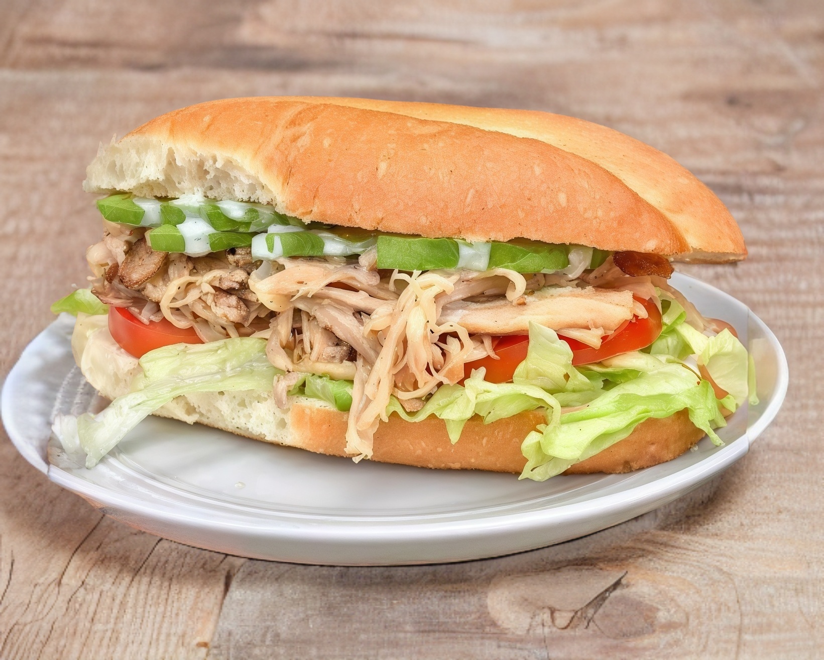 Con lechuga, tomate, jamón, queso amarillo, mayonesa y aguacate. Incluye papa francesa