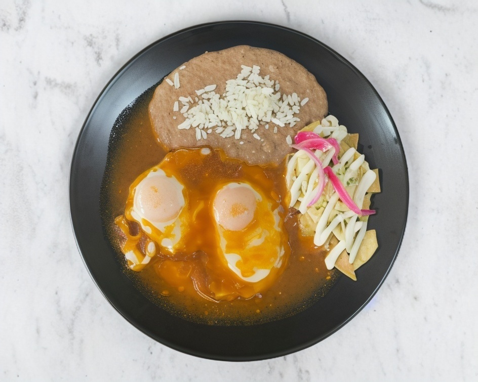 Crujientes totopos bañados en una salsa llena de sabor, coronados con crema, queso y 2 huevos estrellados, toda una tradición de sabor.