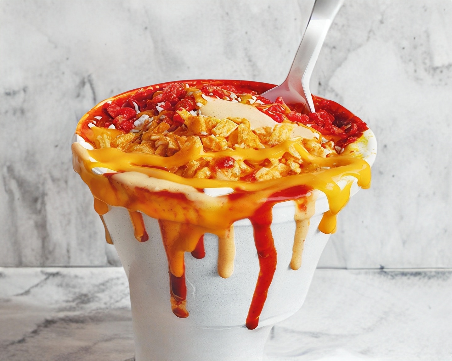 Elote desgranado y entero dentro de un vaso de 1 lt y además puedes elegir una bolsa de papas como: Tostitos, Conchitas, Tostileo, Ruffles, Doritos, Cheetos Flamin hot o Takis fuego.