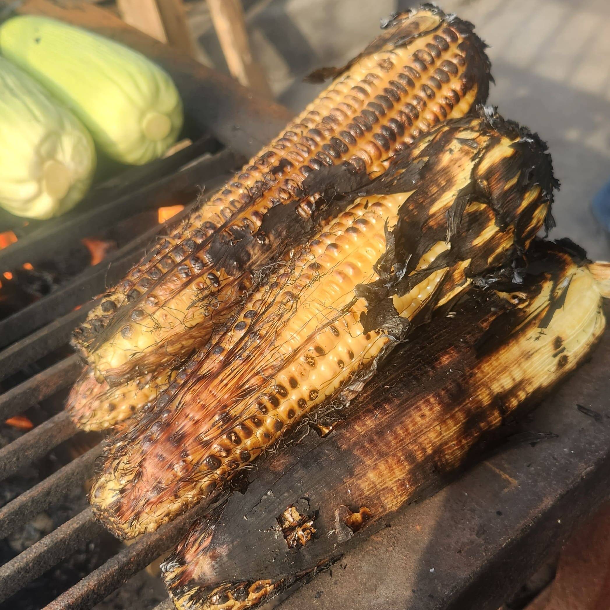 Elote entero asado.