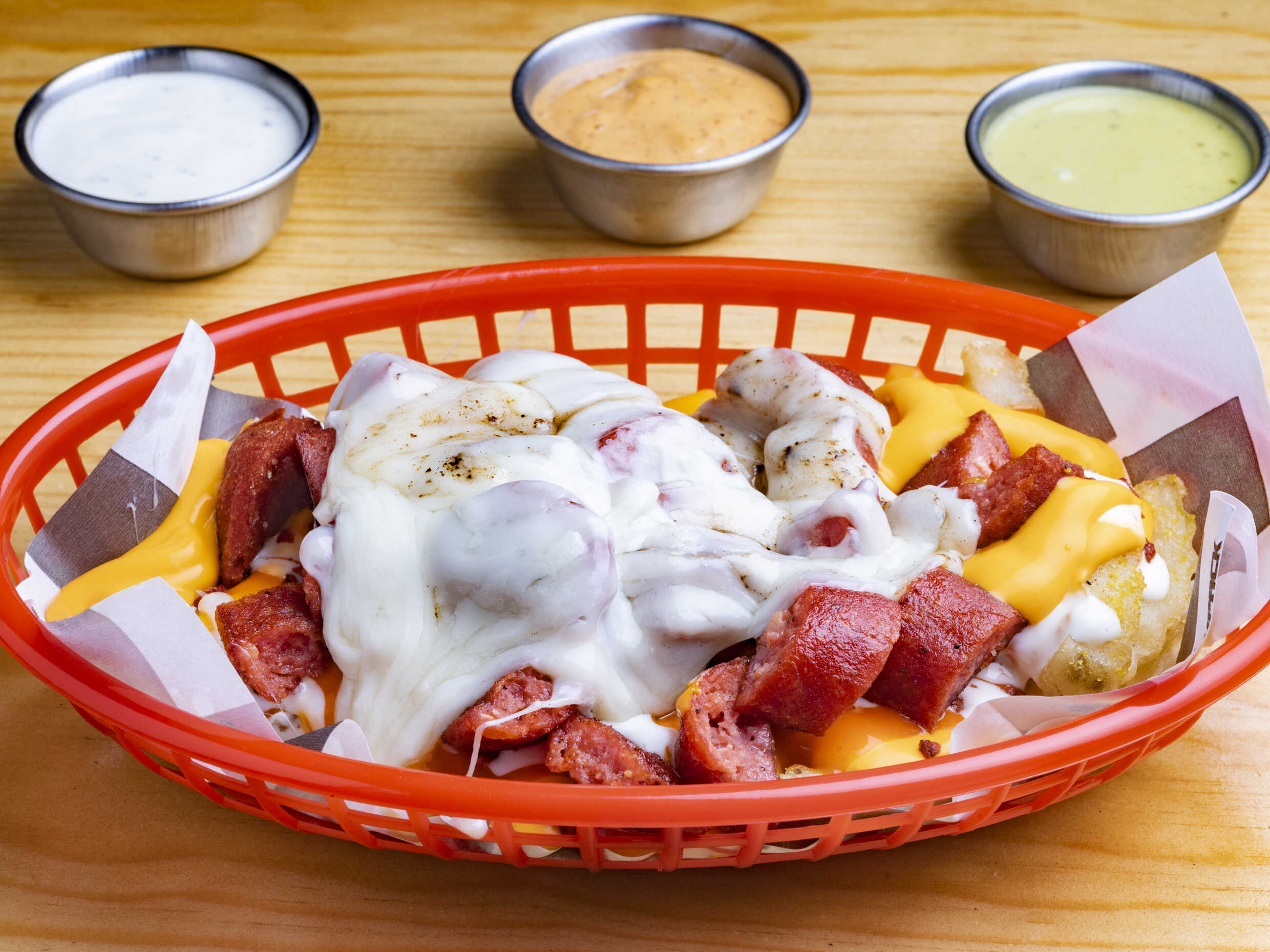 ORDEN DE PAPAS FRITAS QUESO AMARILLO, RANCH Y BBQ