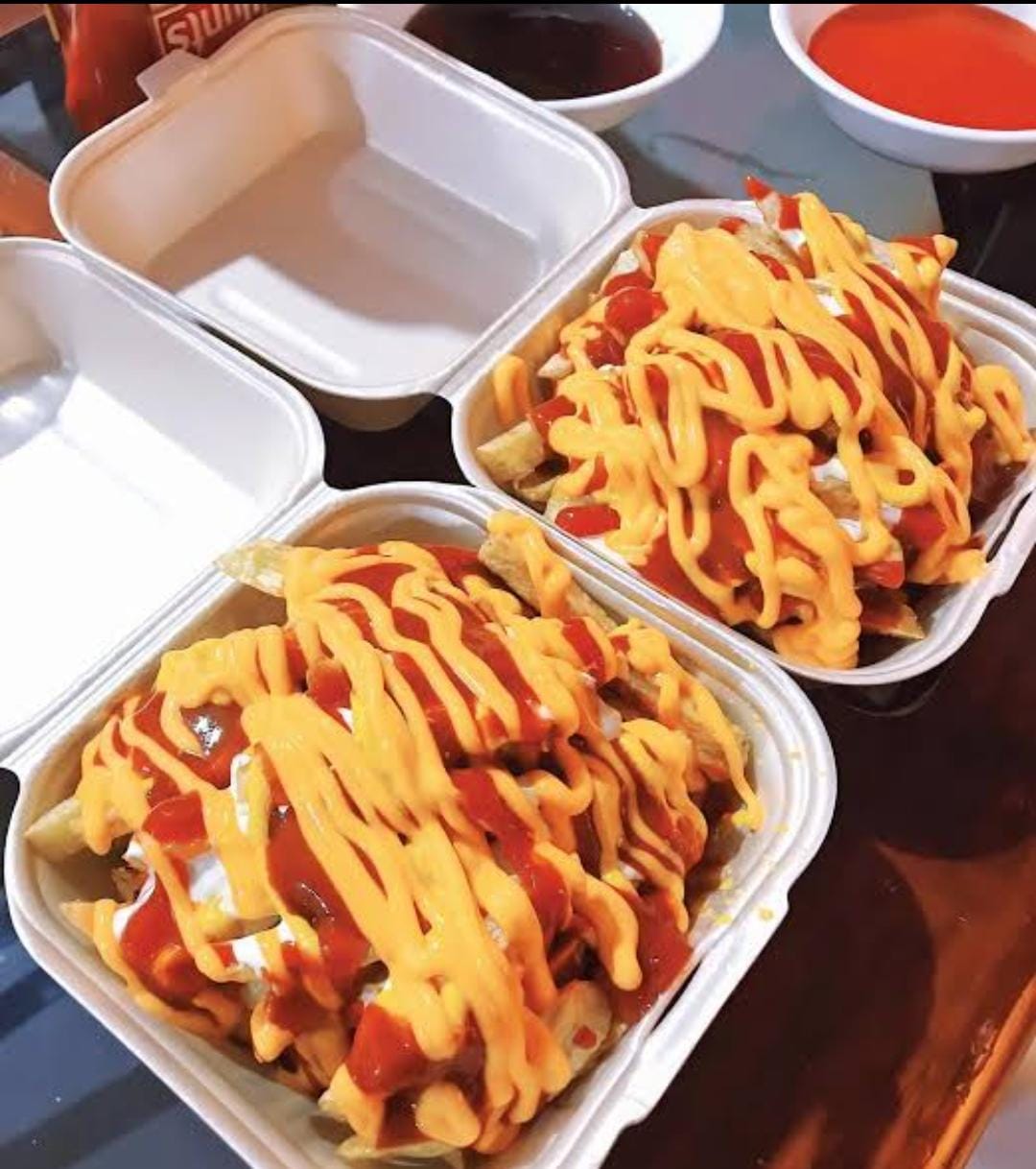 Papas a la francesa con queso amarillo y salsa spicy lemon.