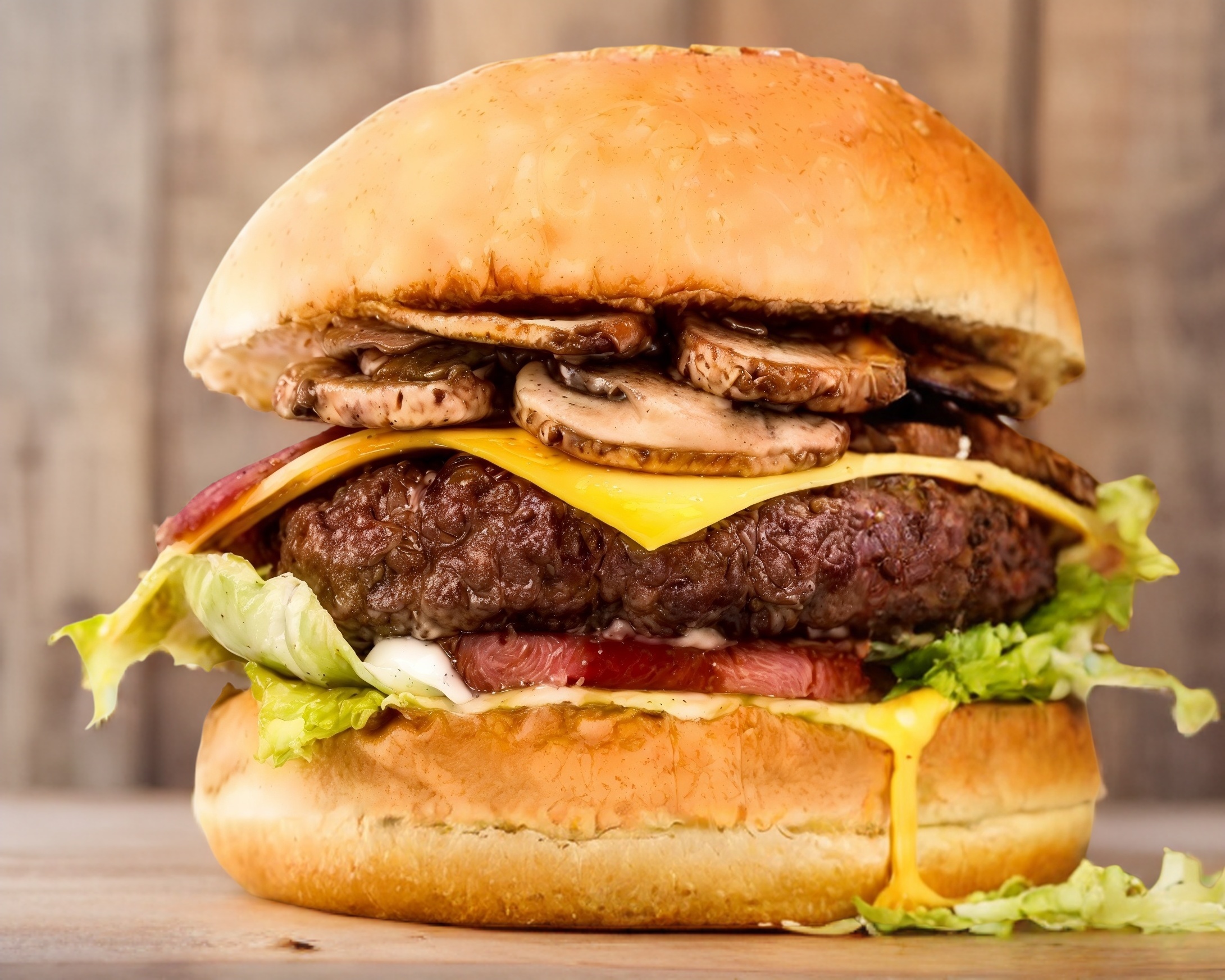 Deliciosa carne de res, aros de cebolla, tocino en pan extra suave con tomate, cebolla, pepinillos, lechuga, mayonesa, catsup y moztaza.