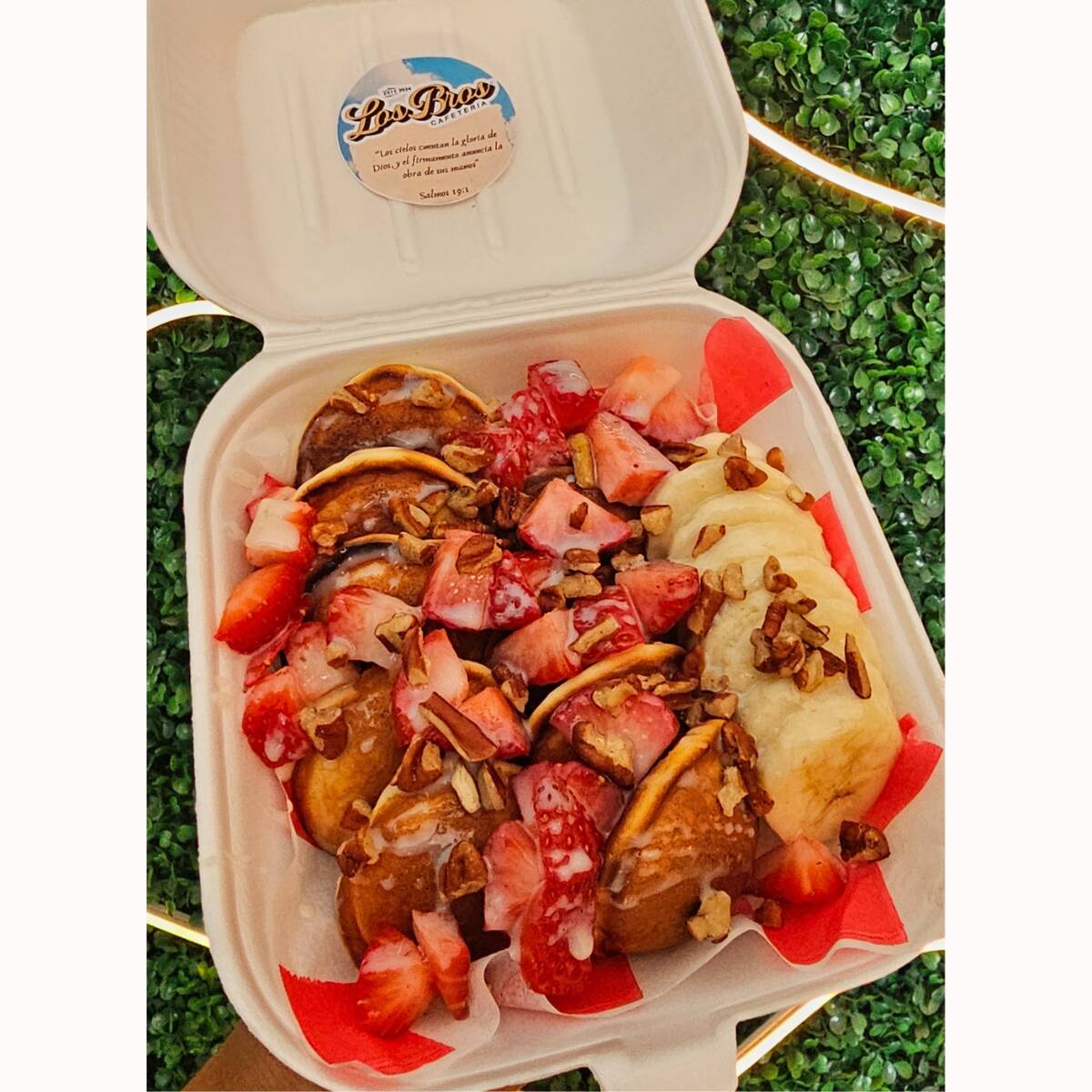 12 mini hotcakes - 1 topping y 1 untable a elegir.