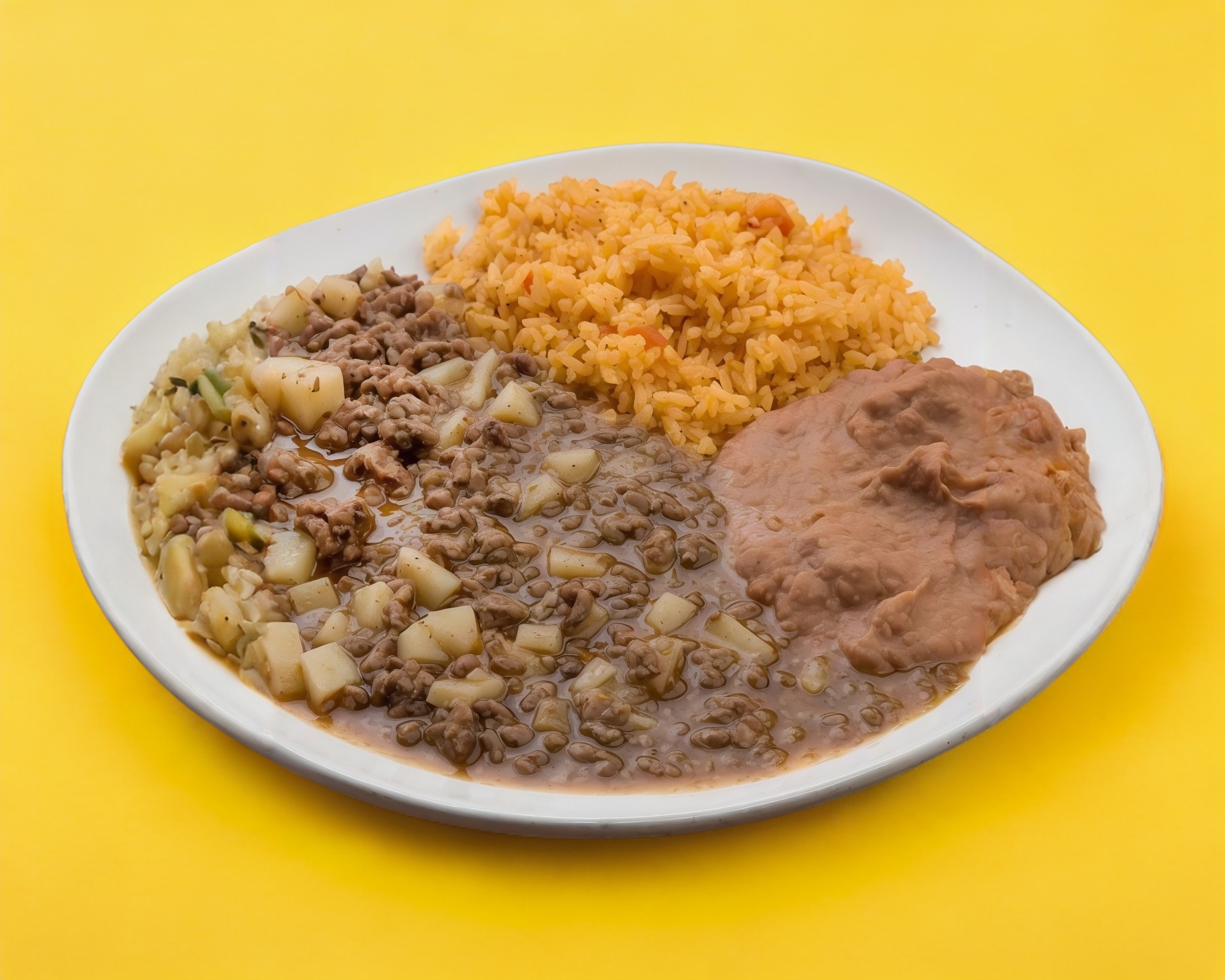 Tortilla de Harina con queso, carne de trompo y carne asada.