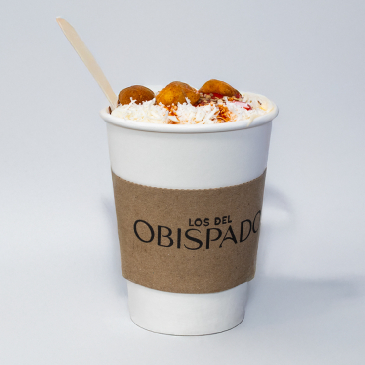 Grano de elote blanco con Queso amarillo, mayonesa, crema, chile liquido, queso blanco, Todos los aderezos aparte.