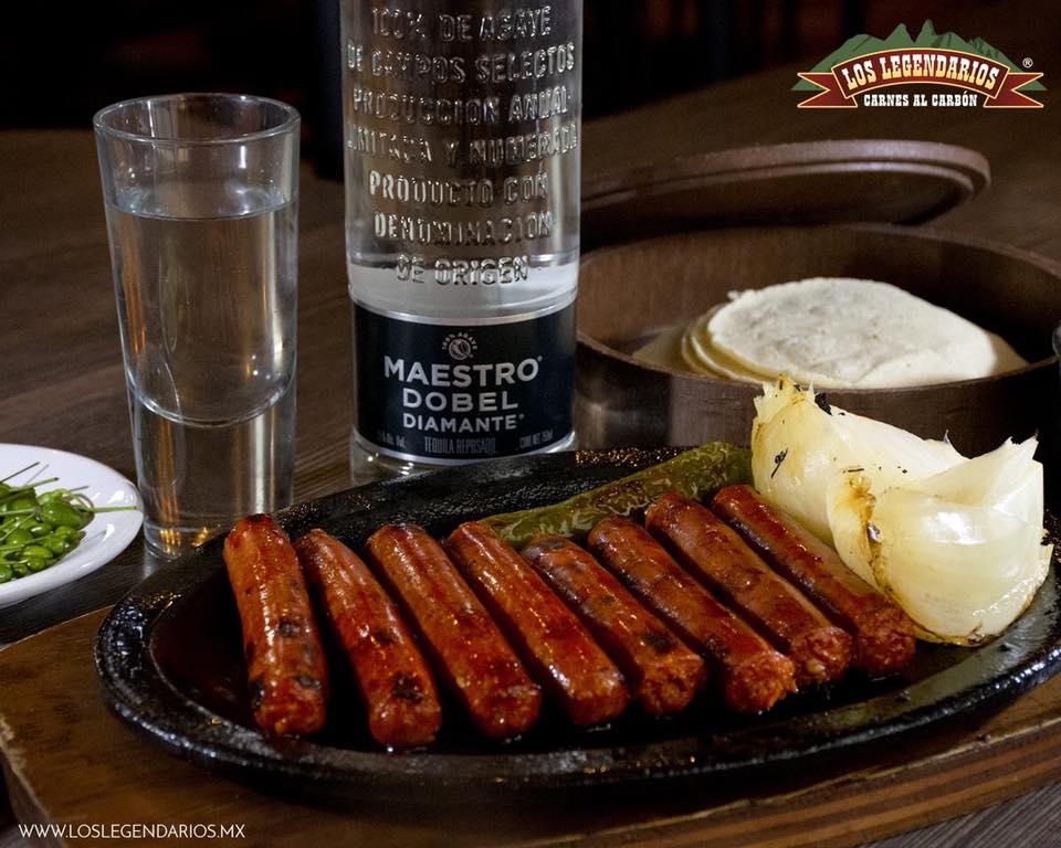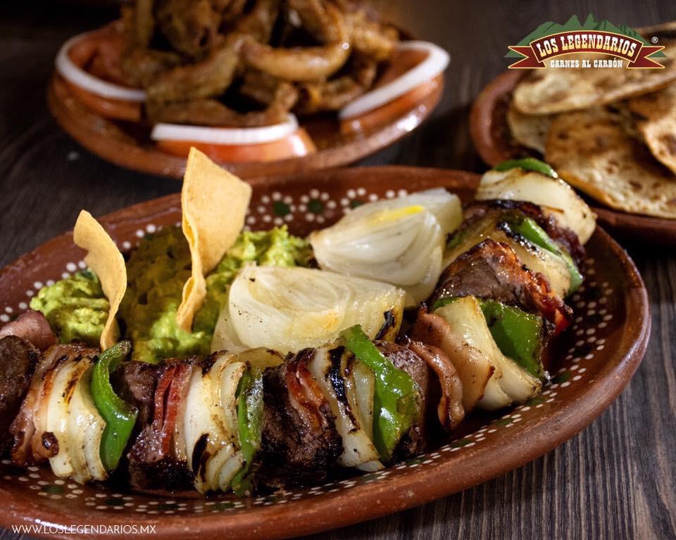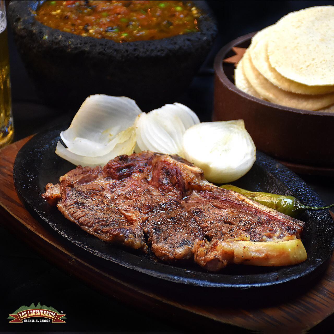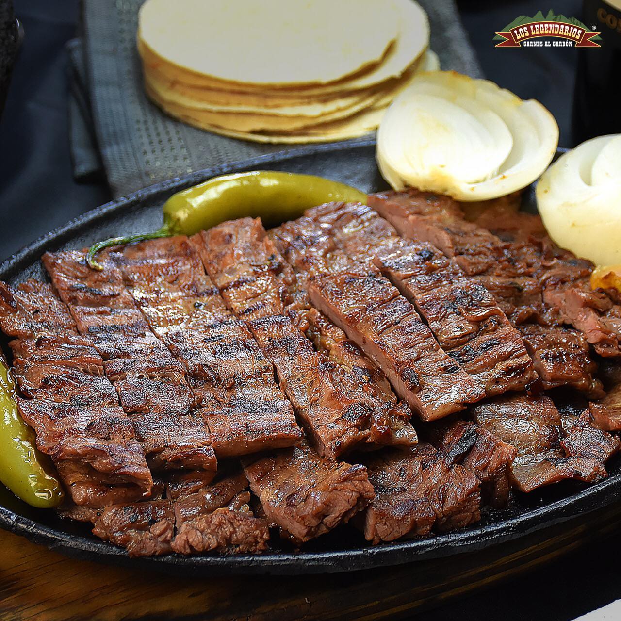 1 Kg de carne, 4 frijoles a la charra, 2 cebollas asadas y tortillas.