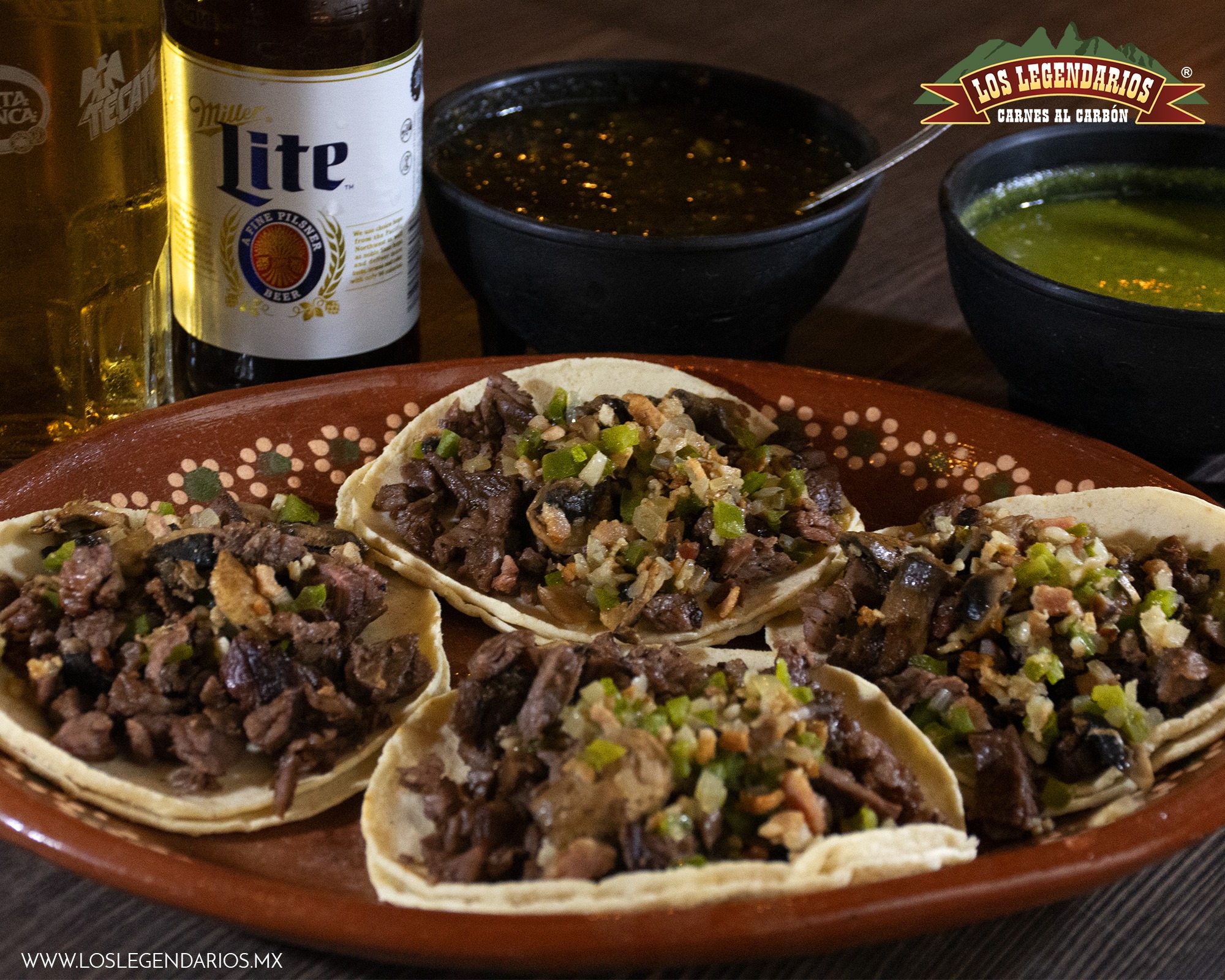 Orden con 4 tacos (arrachera, champiñón, tocino, cebolla y morrón).