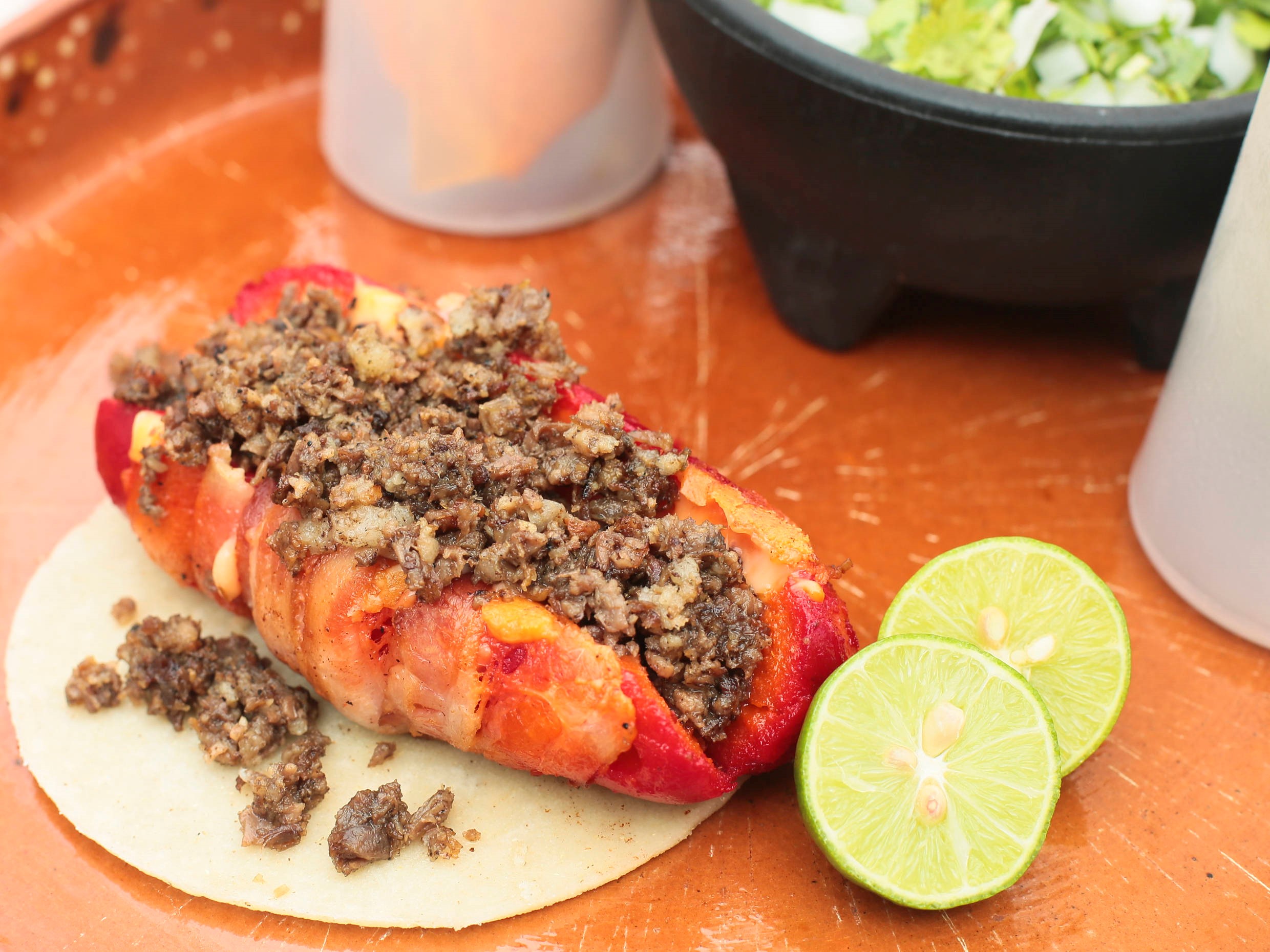 Incluye 1 jalapa, 1 empalme, cebolla asada y salchicha sencilla.