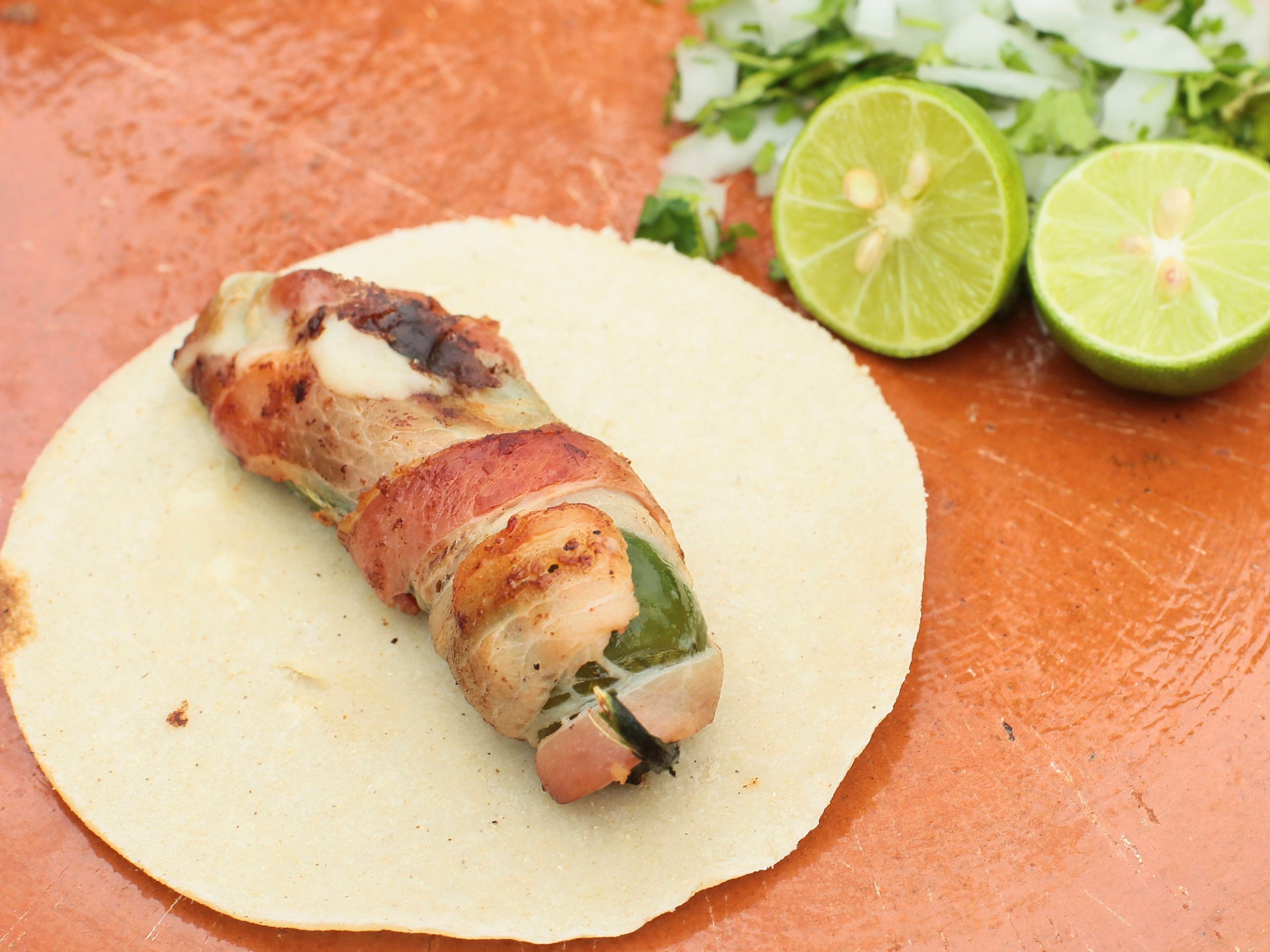 Mezcla de Queso Philadelphia, Tocino y Jalapeño con Carne Asada.