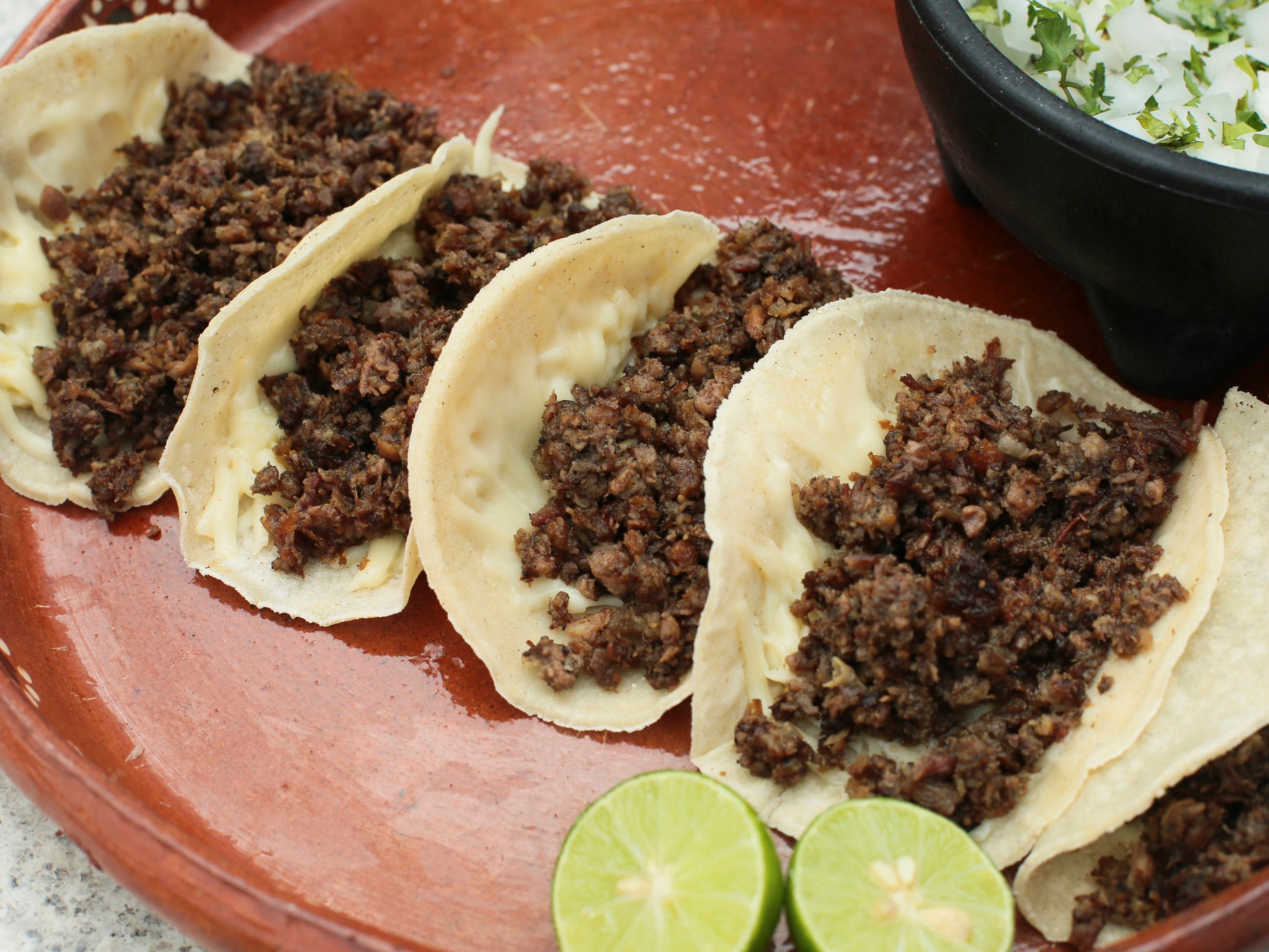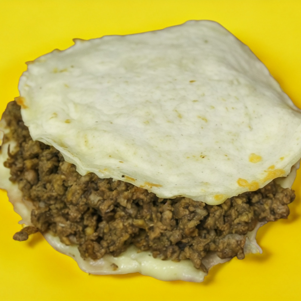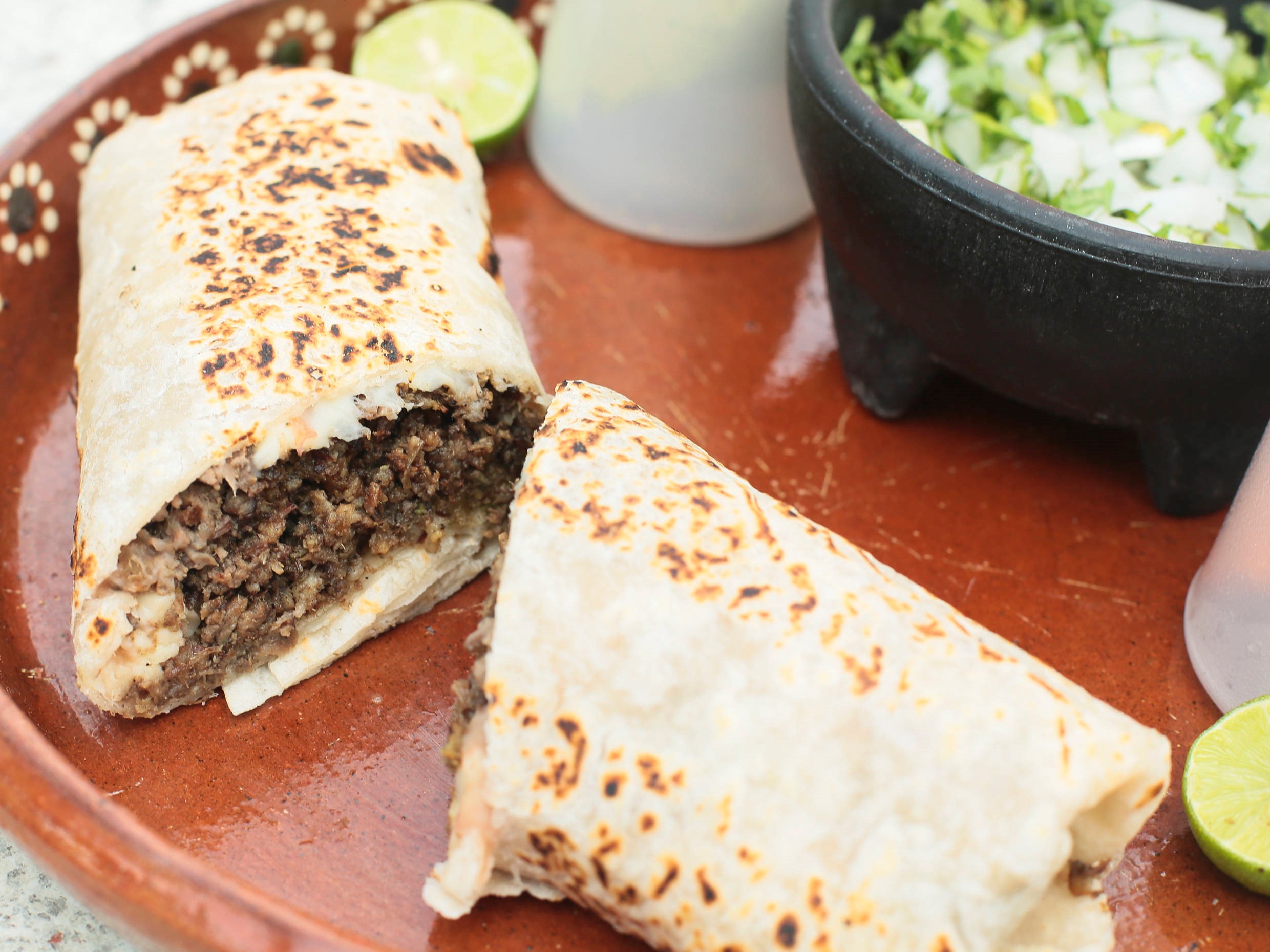 Tortilla con carne, queso y frijoles, receta de rancho.