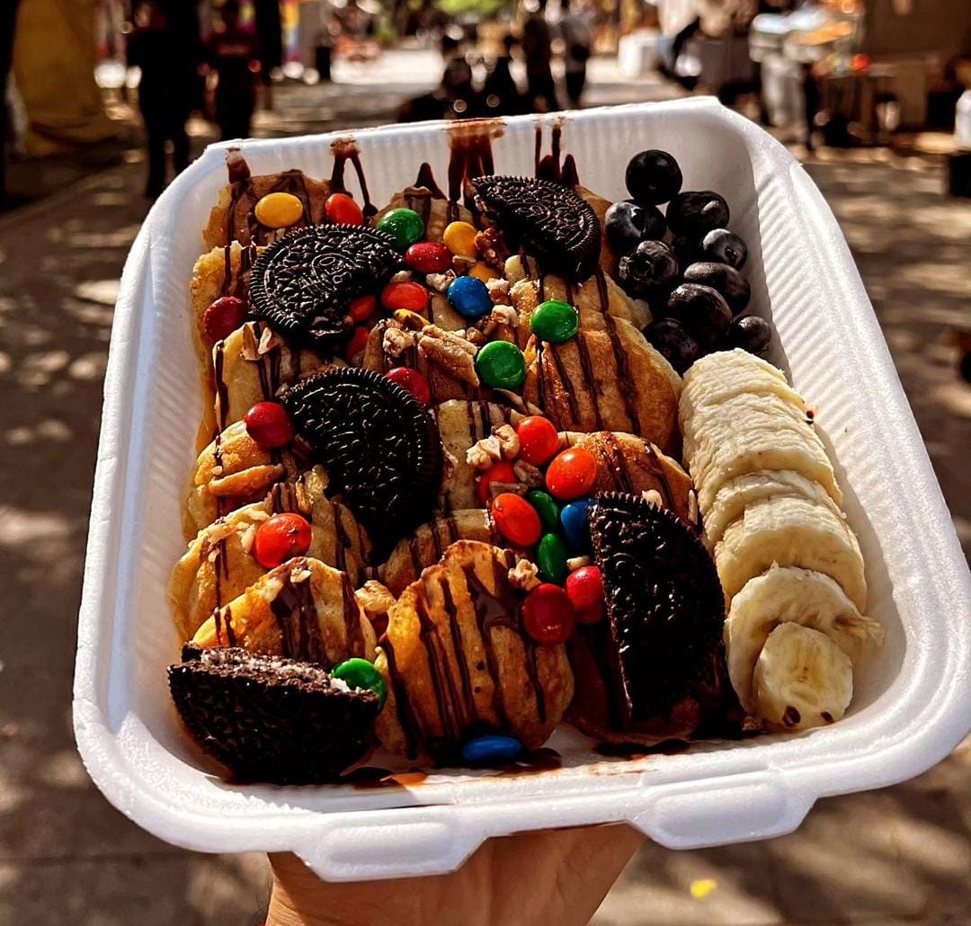 30 MINI HOTCAKES 2 FRUTAS A ELEGIR 3 JARABES A ELEGIR 3 TOPPINGS A ELEGIR