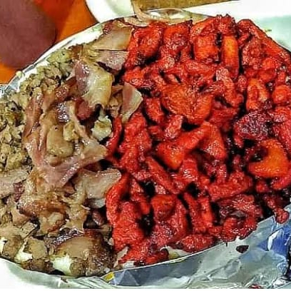 carne de res acompañada de papas , salchicha polaca , jamon ,queso, lecguga y aderezos