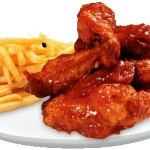 8 ALITAS BAÑADAS EN TU SALSA FAV ACOMPAÑADAS DE PAPAS A LA FRANCESA
