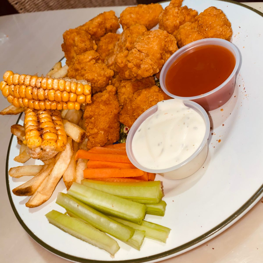 BONELESS BAÑADOS EN TU SALSA FAV ACOMPAÑADOS DE PAPAS A LA FRANCESA