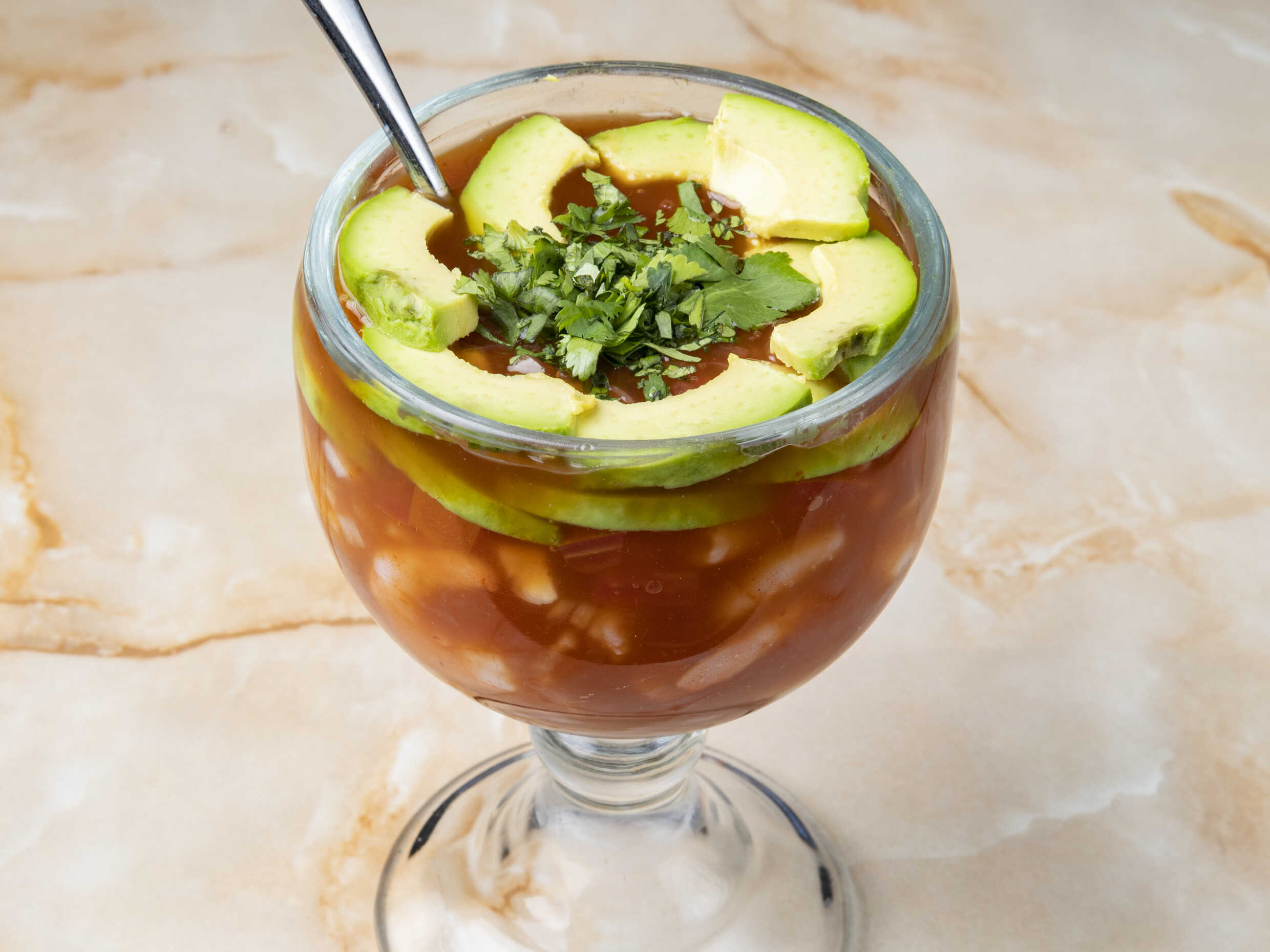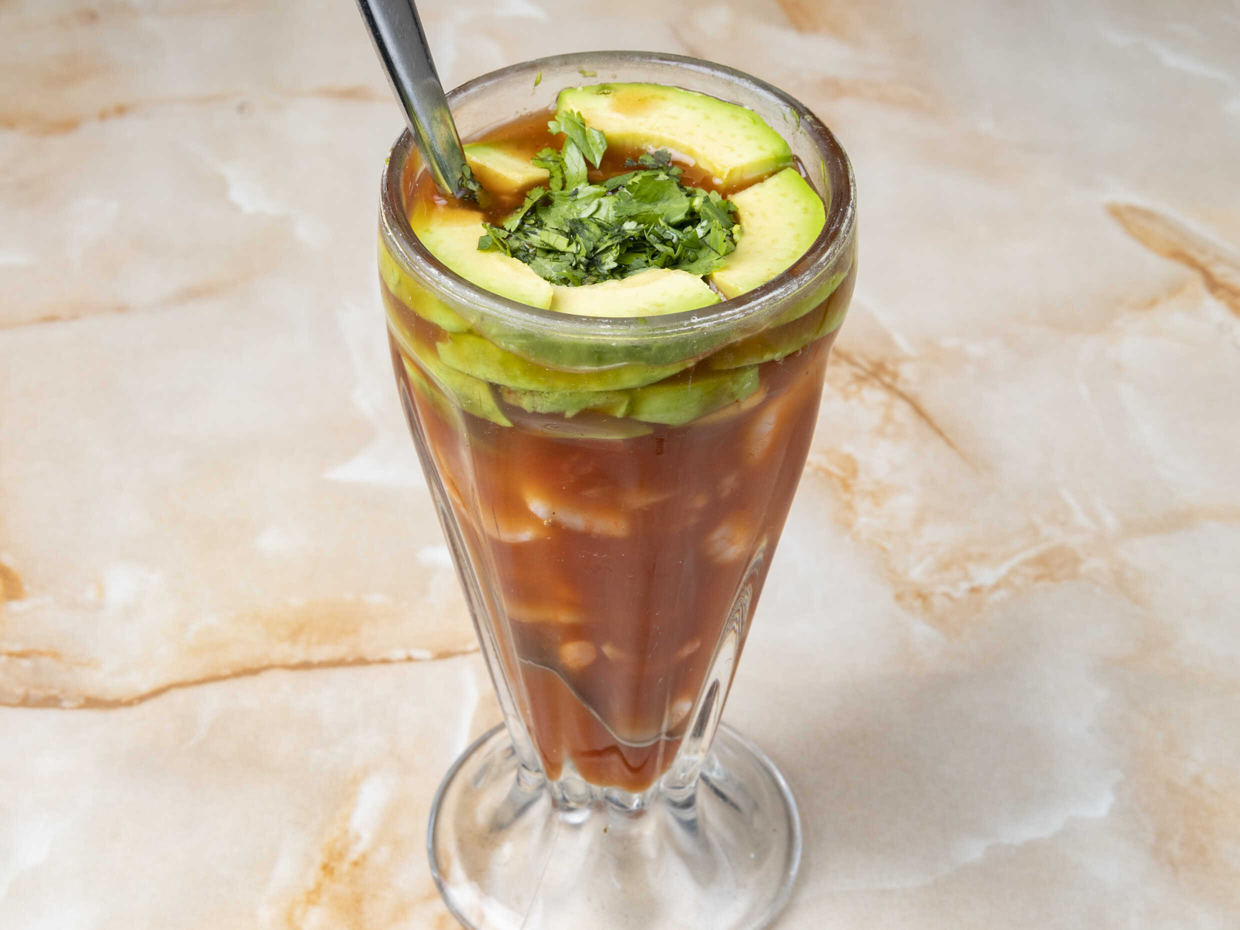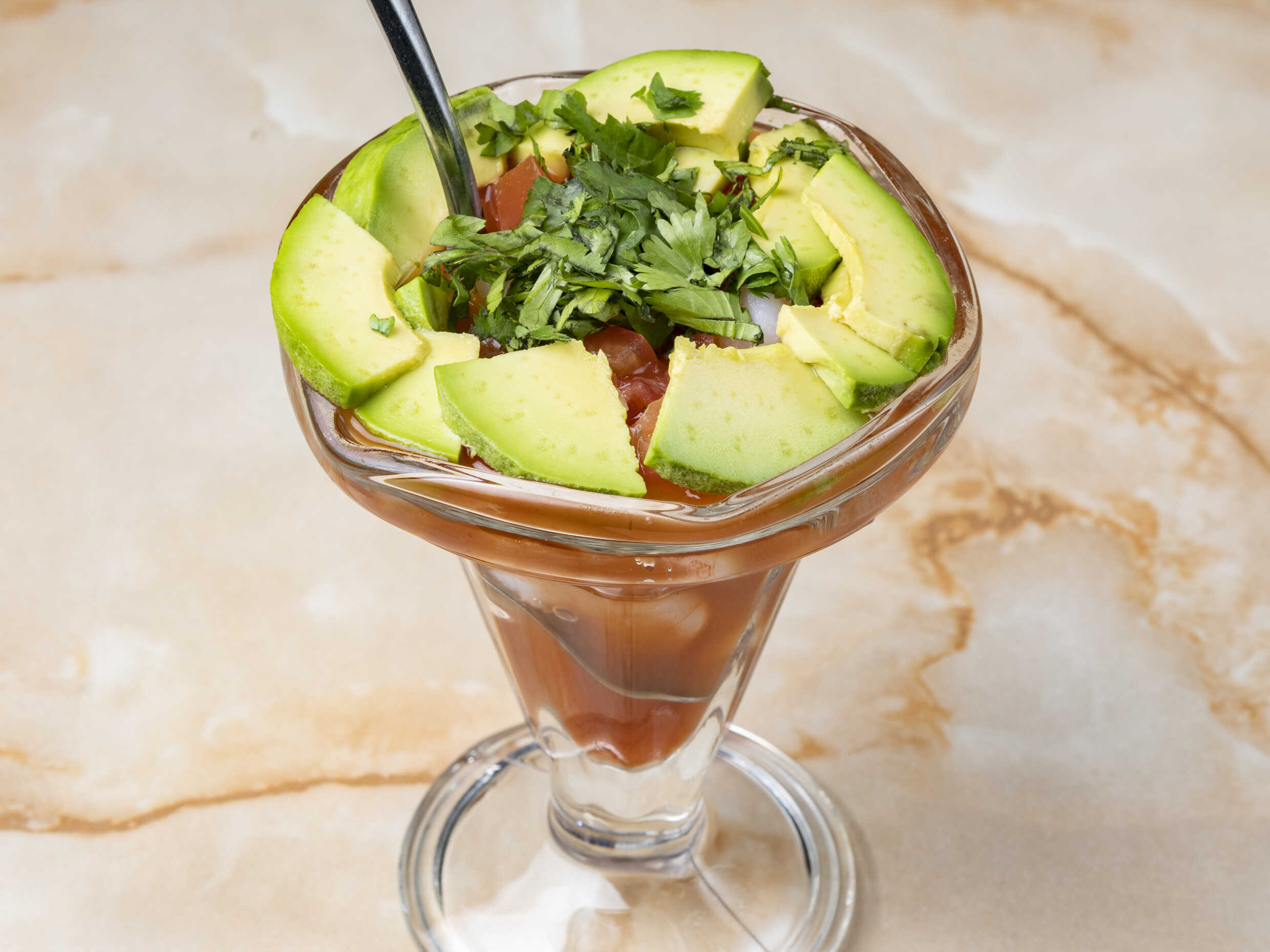 2 Cócteles con camarón, cebolla, tomate, cilantro y aguacate
