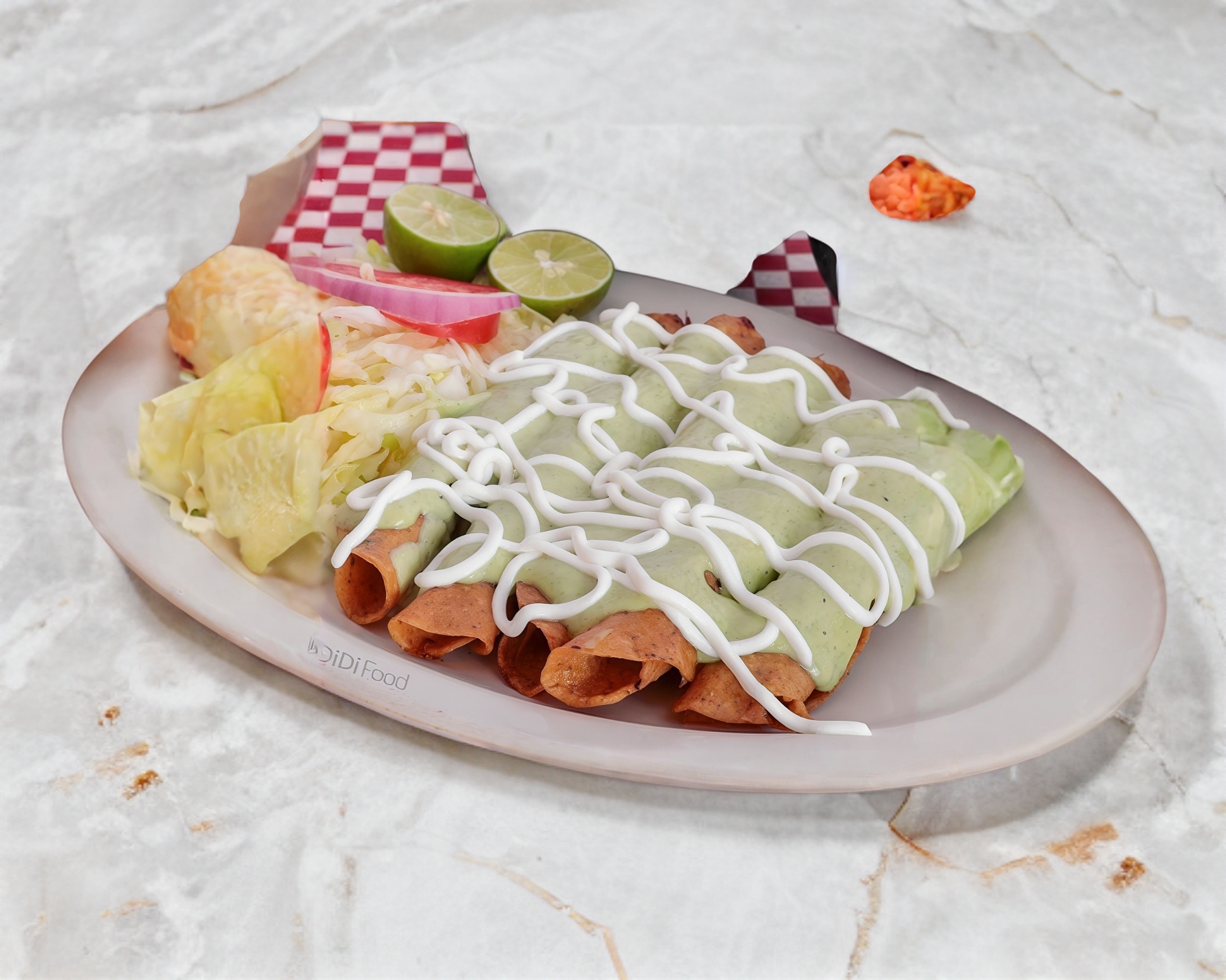 Carne de res deshebrada ,guacamole,lechuga ,tomate,cebolla morada y limon