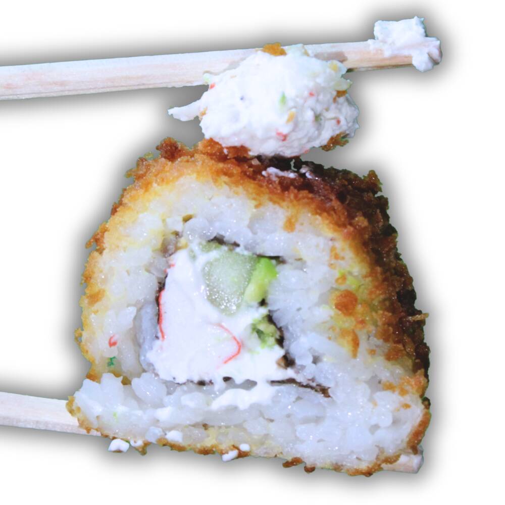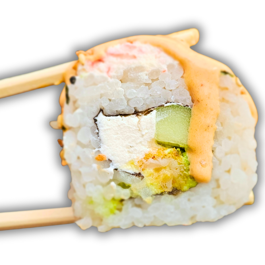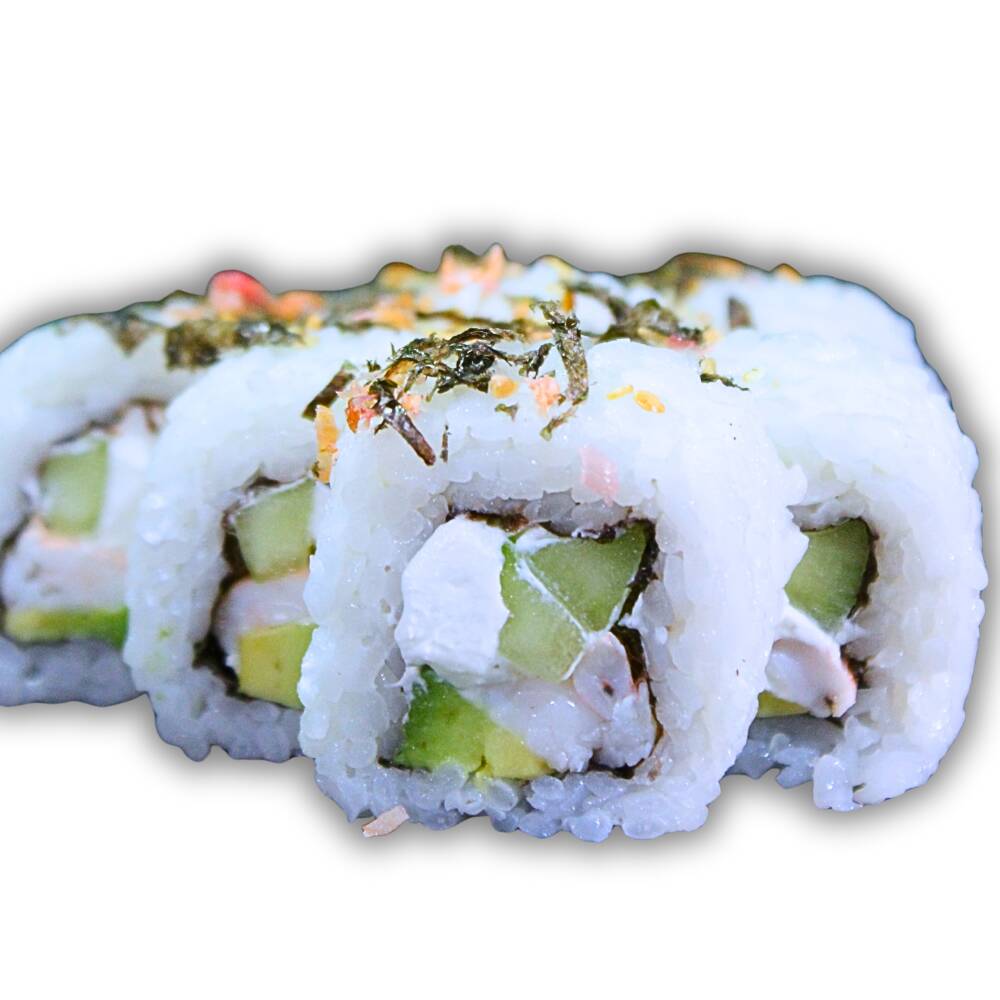 Por dentro: Surimi, pepino, queso crema, aguacate. Por fuera: Tampico.