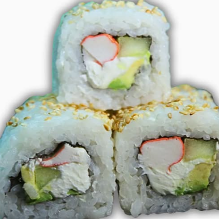 Por dentro Surimi, pepino, queso crema, aguacate. Por fuera: ajonjolí.