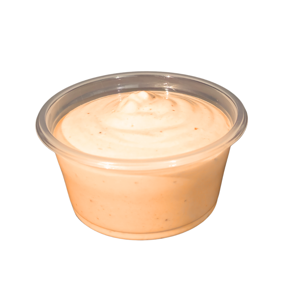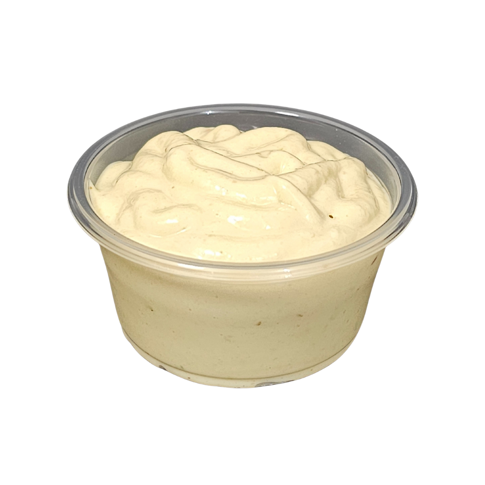 Aderezo cremoso con ajo dorado y toque picante. Porciones individuales ideales para acompañar y realzar el sabor de tus platillos.