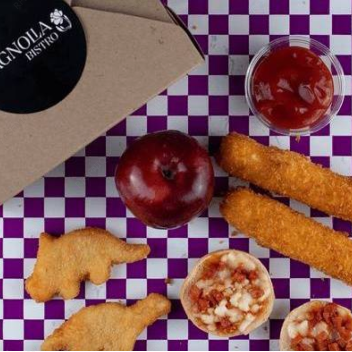 2 Nuggets, 2 mini pizzas, 2 palitos de queso y una manzanita.