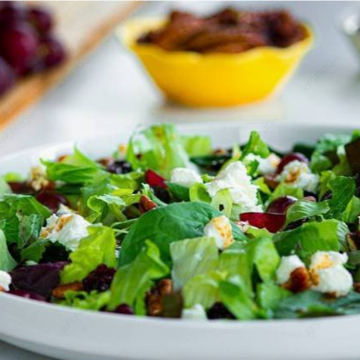 Lechuga sangría, espinacas, arándanos, nuez, queso feta, uvas, vinagreta de mostaza.