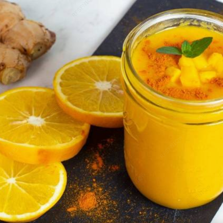 Mango, plátano, naranja, jengibre y cúrcuma.
