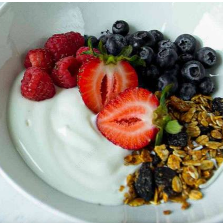 Yogurt griego con fresas, frambuesas, moras y miel de abeja.