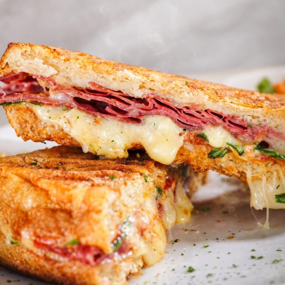 Sandwich de origen francés con jamón, gratinado con queso gruyere.