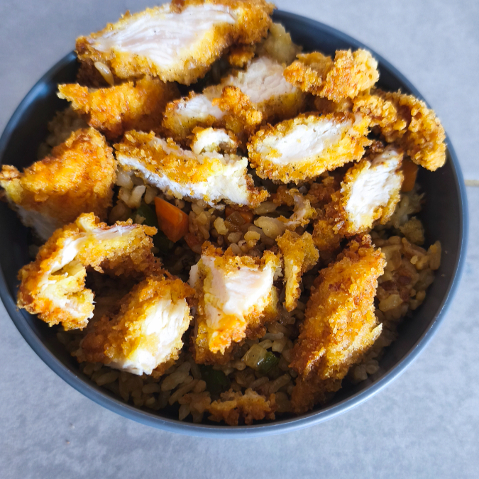 A la plancha o empanizado, acompañado de arroz frito, papas, ensaladas, salsas y aderezo chipotle.