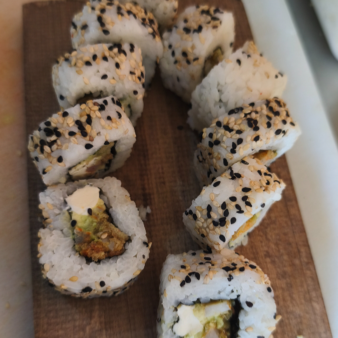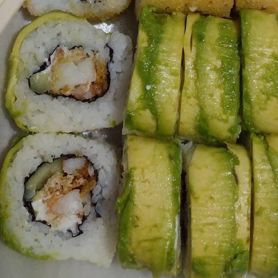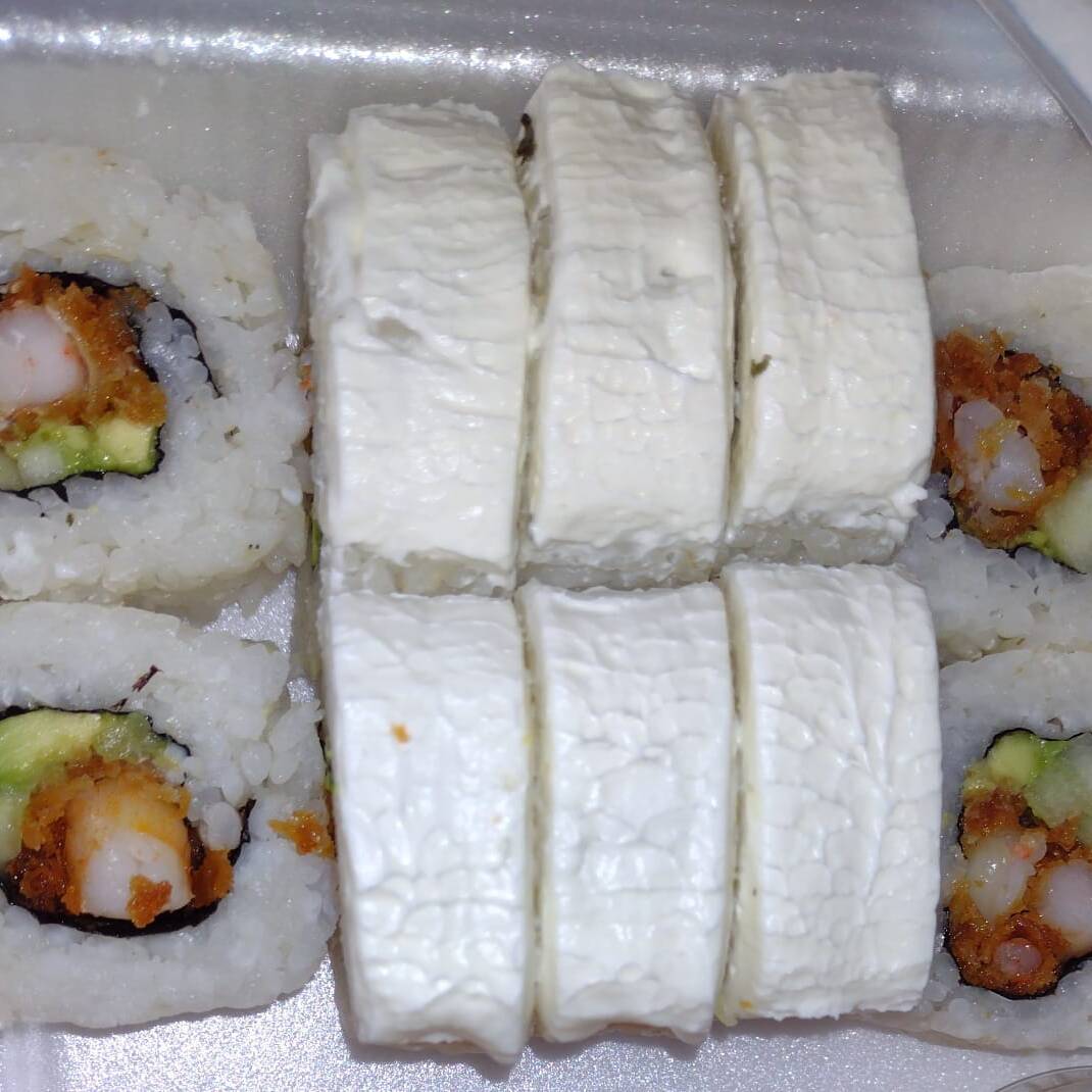 Camarón ,Filadelfia ,aguacate, sushi frio ,soya y chipotle.