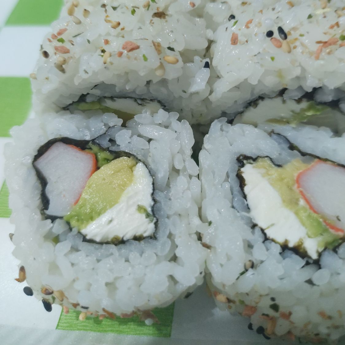 surimi, queso philadelphia, aguacate, salsa de soya y aderezo