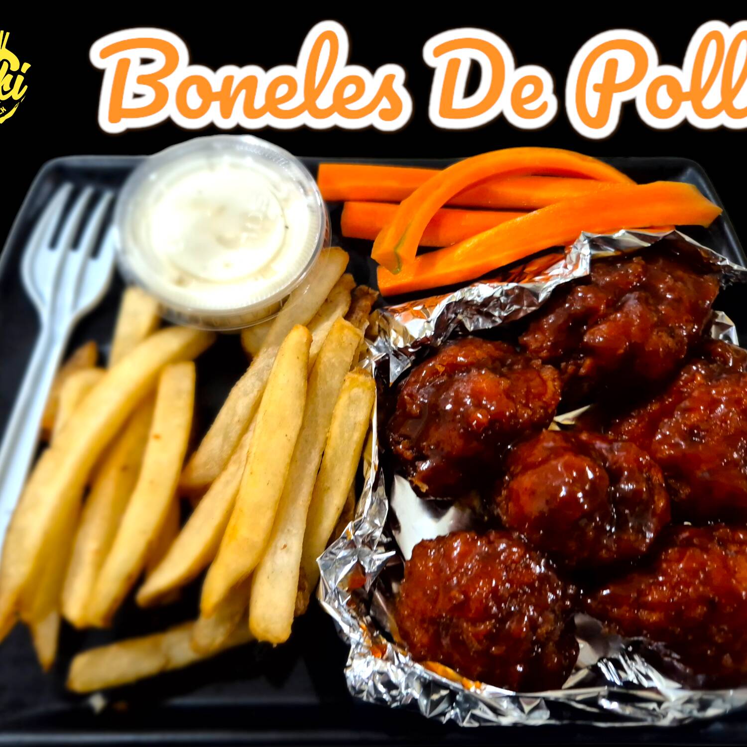 cubos de pechuga de pollo empanizada, doble porcion de papas, doble ranch, zanahoria.