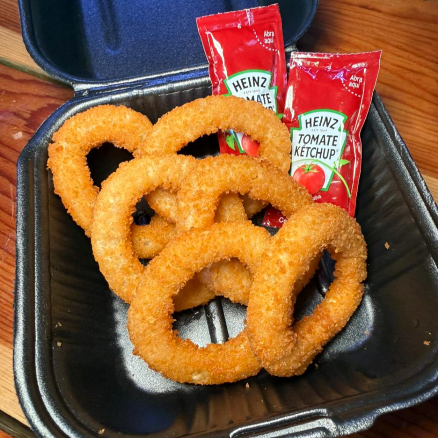 Carne de sirloin 150 g con queso, tocino, 2 aros de cebolla, aderezo BBQ y pan brioche.