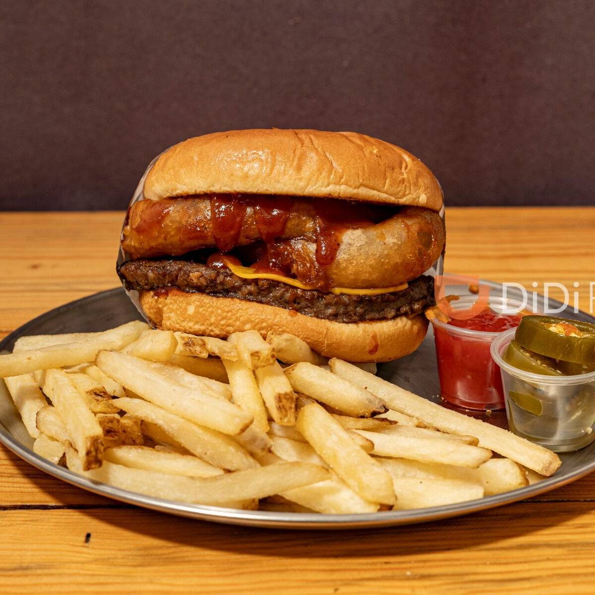 La mas sencilla del condado, carne, queso, tocino y pepinillos.