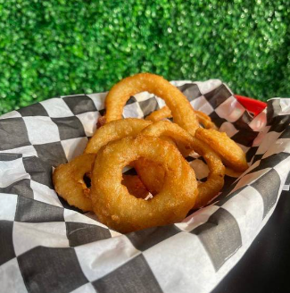 Aros de cebolla acompañados con nuestra tradicional salsa de la casa.