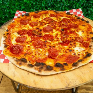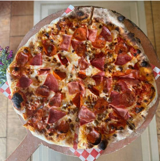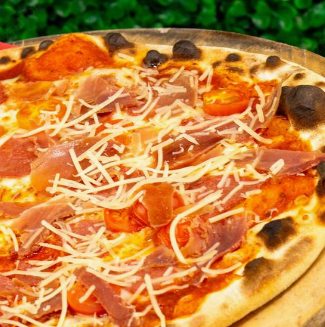 Exquisita pizza al horno, base de queso mozzarella, salami curtido, pepperoni, tocino y nuestra deliciosa salchicha italiana.