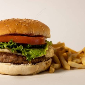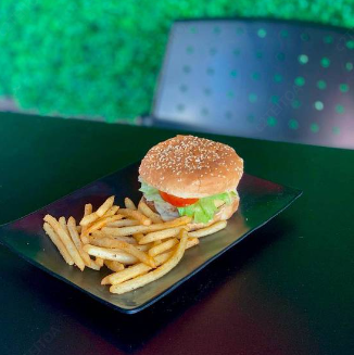 Nuestra tradicional hamburguesa con pan brioche, carne 100% arrachera, jamón, queso amarillo, queso manchego, tomate, cebolla y lechuga. Acompañada de una porción de papas a la francesa.