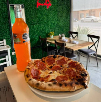 Exquisita pizza al horno, base de queso mozzarella, chile jalapeño, carne a la bolognesa, salchicha de pavo y tocino. 35 cm y Bebida 335 ml.