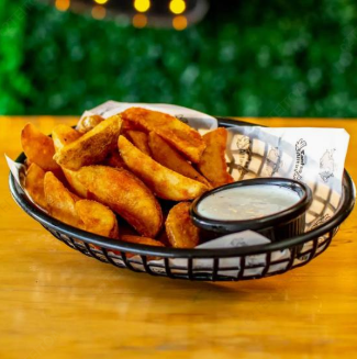 Exquisitas papas gajo acompañadas de aderezo ranch.