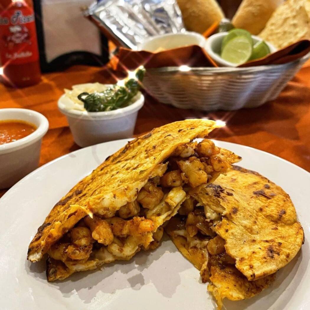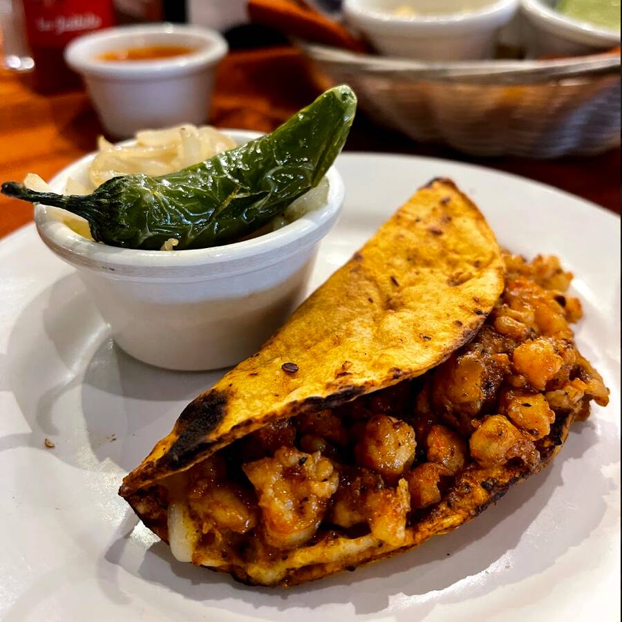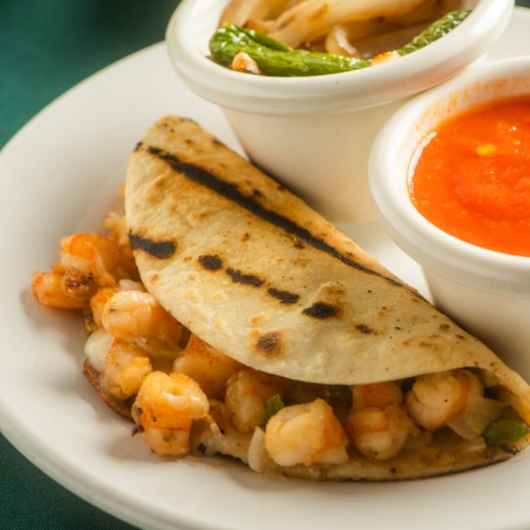 1 pza. Camarón en salsa chipotle, queso Oaxaca y tortilla de maíz barnizada en salsa chipotle.