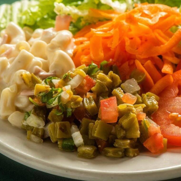 Base de lechuga con 4 toppings y 1 aderezo a elegir.