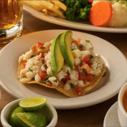 220ml. Camarón, jaiba, callo, ostión y pulpo con pico de gallo y aguacate, acompañado de galletas y salsa picante.